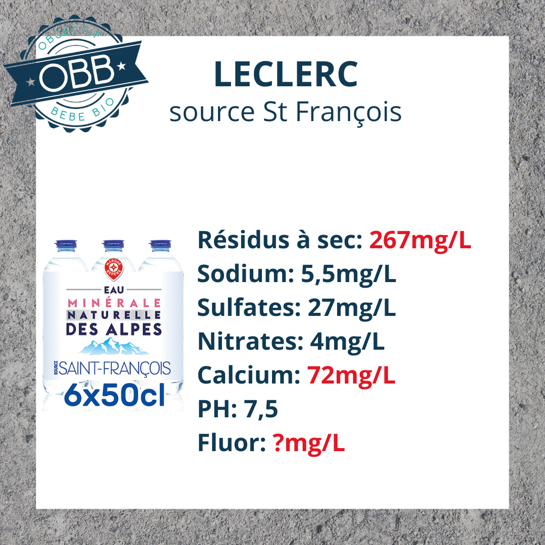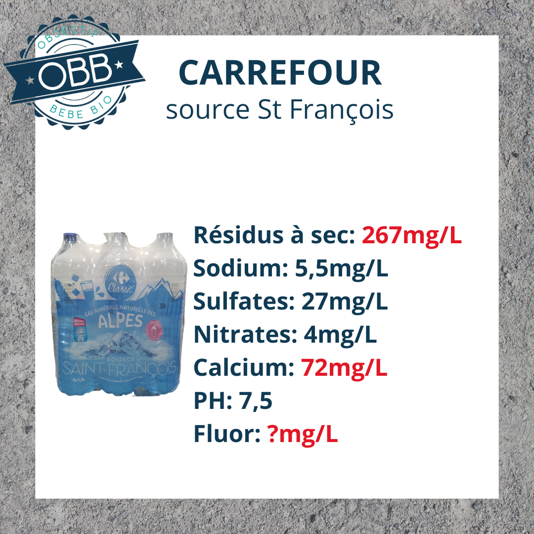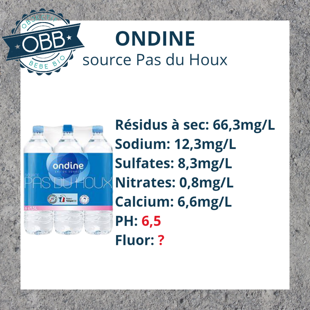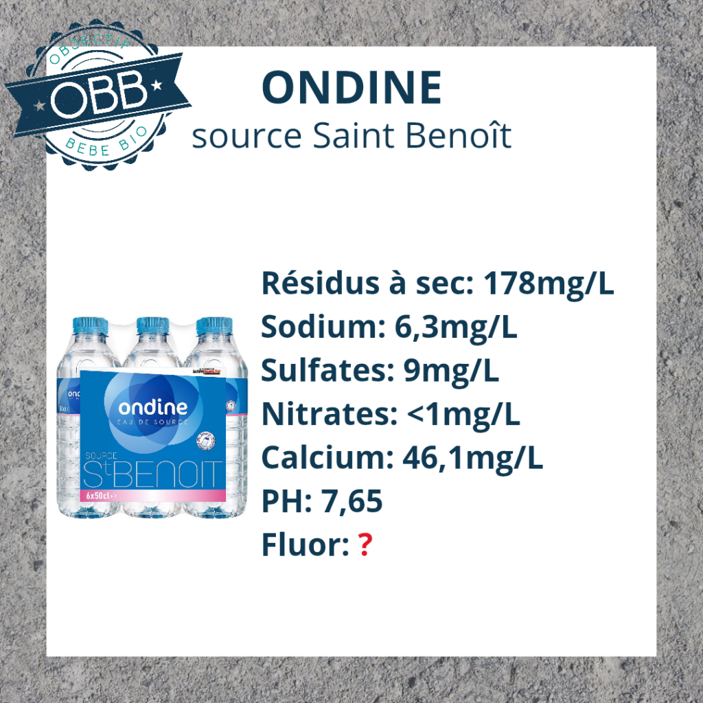 Afin de convenir aux bébés, une eau doit contenir moins de 0,5 mg/L de fluor.