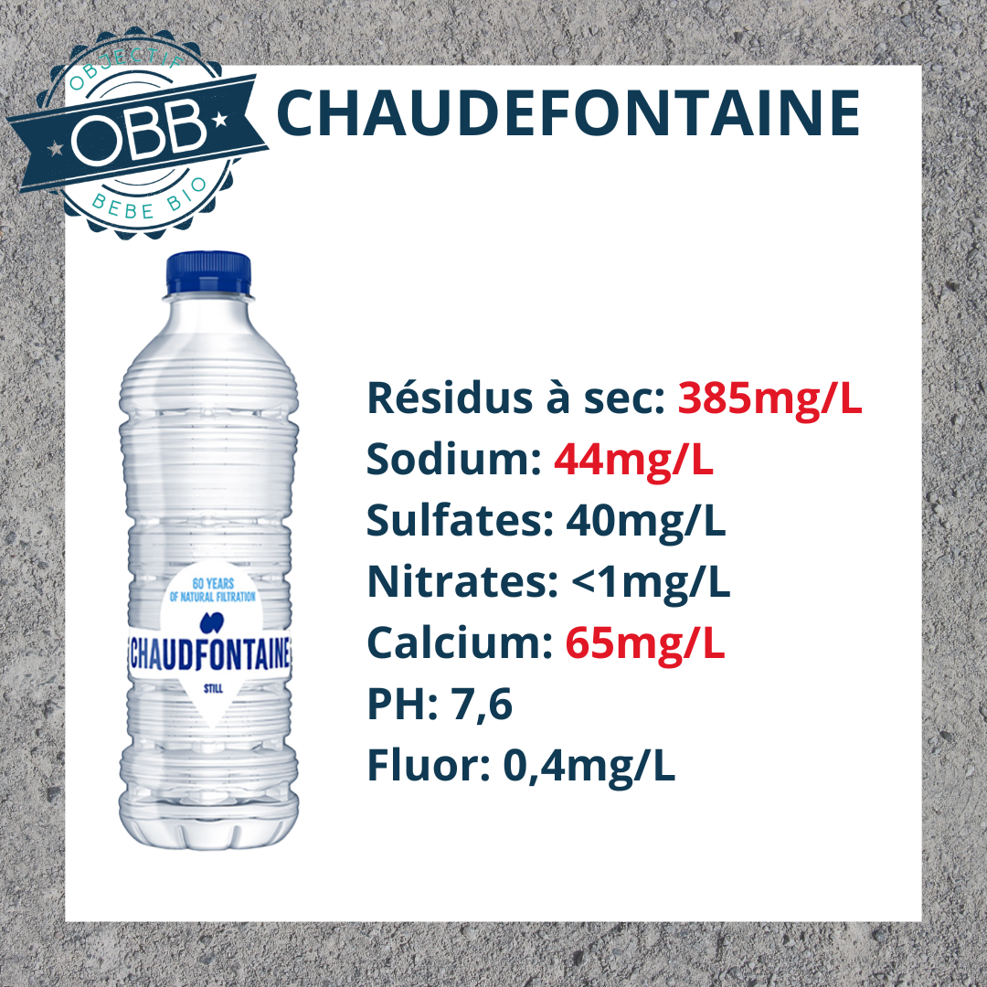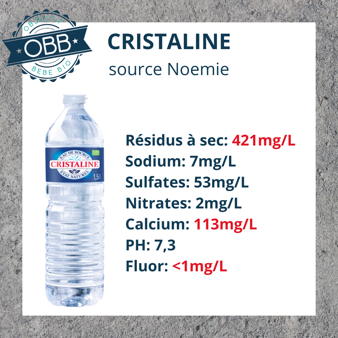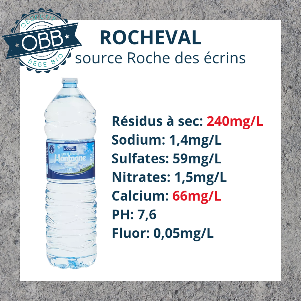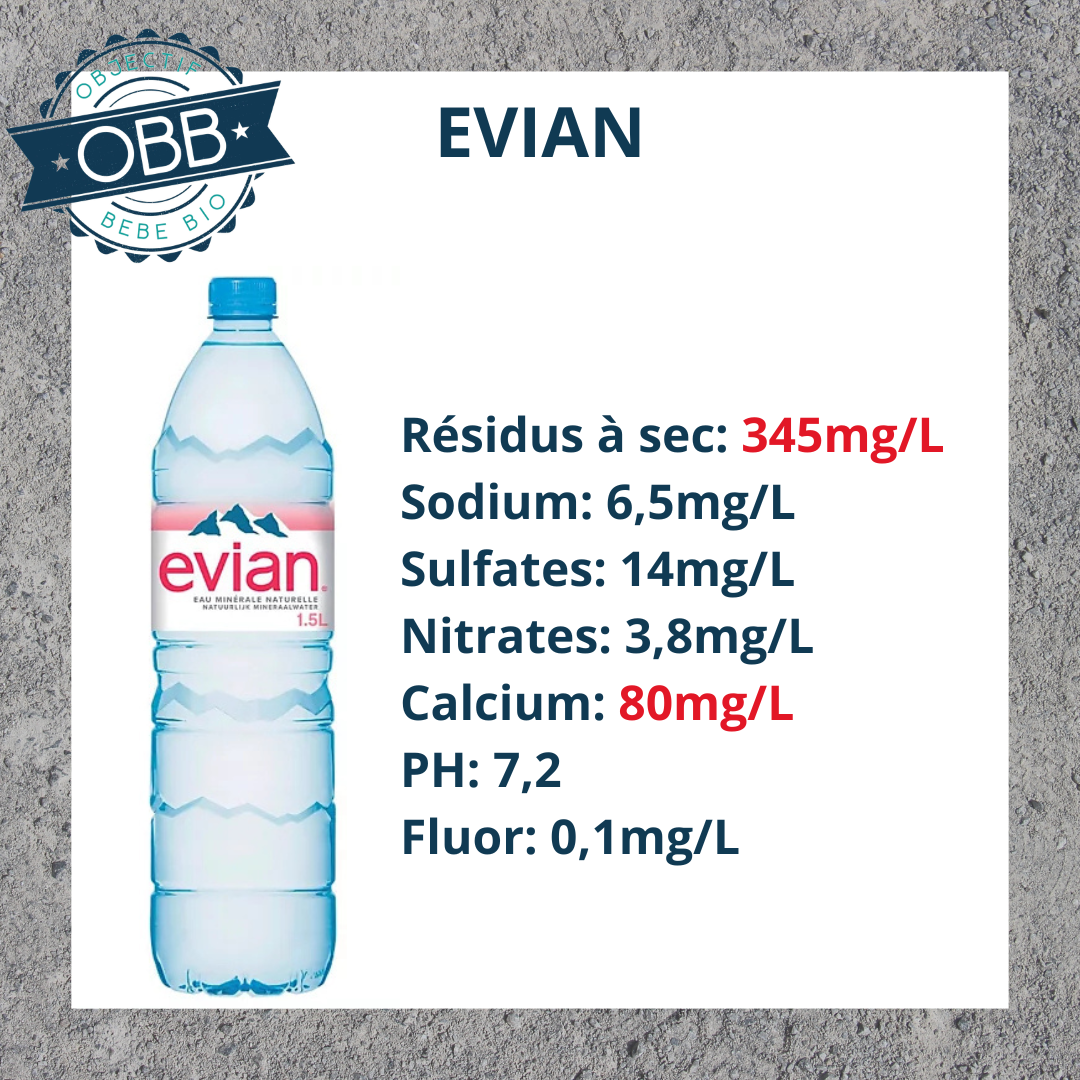 Pour l’eau en bouteille de votre bébé il vaut mieux privilégier un taux inférieur à 140mg par litre.