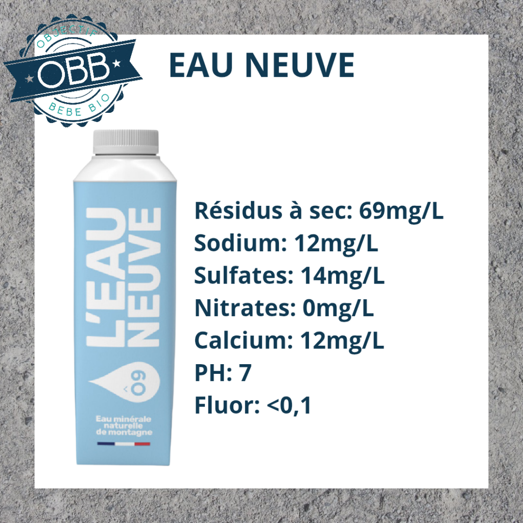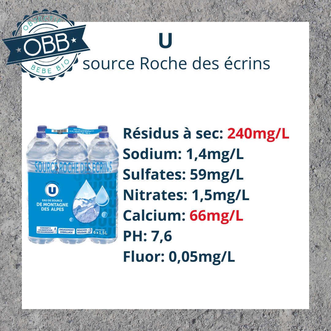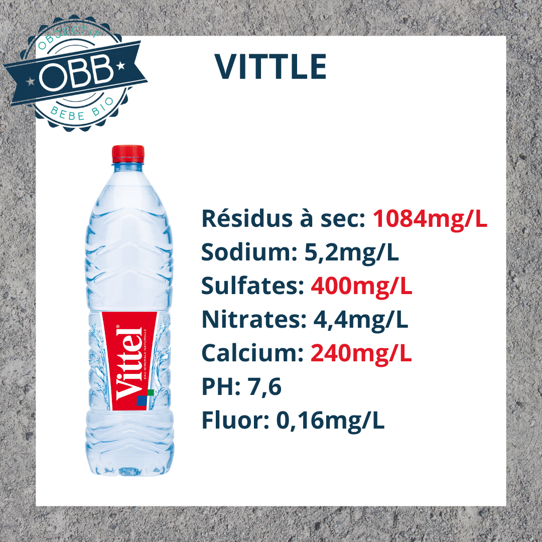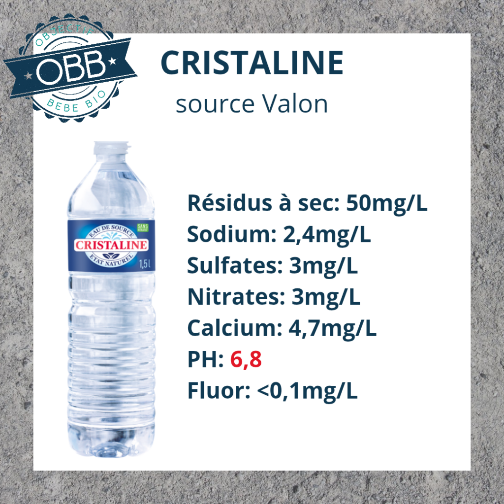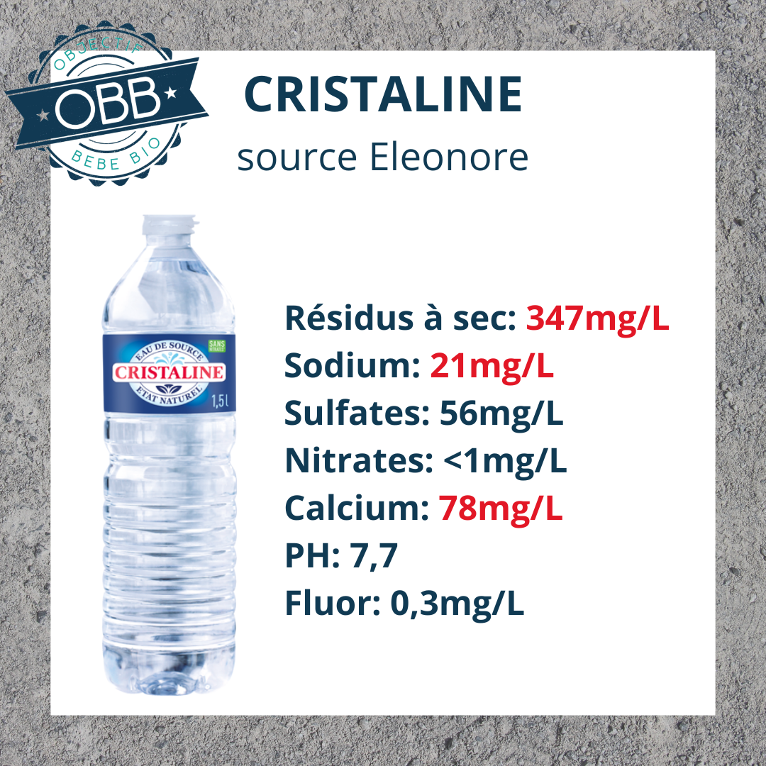 Pour l’eau en bouteille de votre bébé il vaut mieux privilégier un taux inférieur à 140mg par litre.