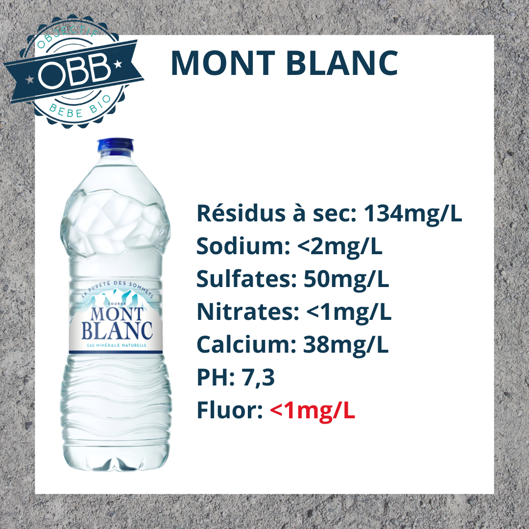 Si une eau dépasse 1,5mg de fluor par litre, elle doit obligatoire comporter cette mention: » Contient plus de 1,5 mg/L de fluor : ne convient pas aux nourrissons et aux enfants de moins de 7 ans pour une consommation régulière« . En effet, même pour les enfants plus grands il y a des taux à ne pas dépasser.