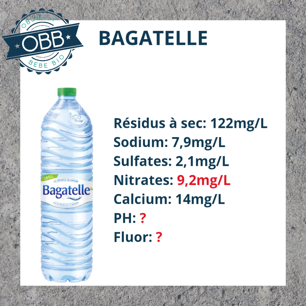 Les taux de résidus à sec dans l’eau en bouteille compatible pour bébé :