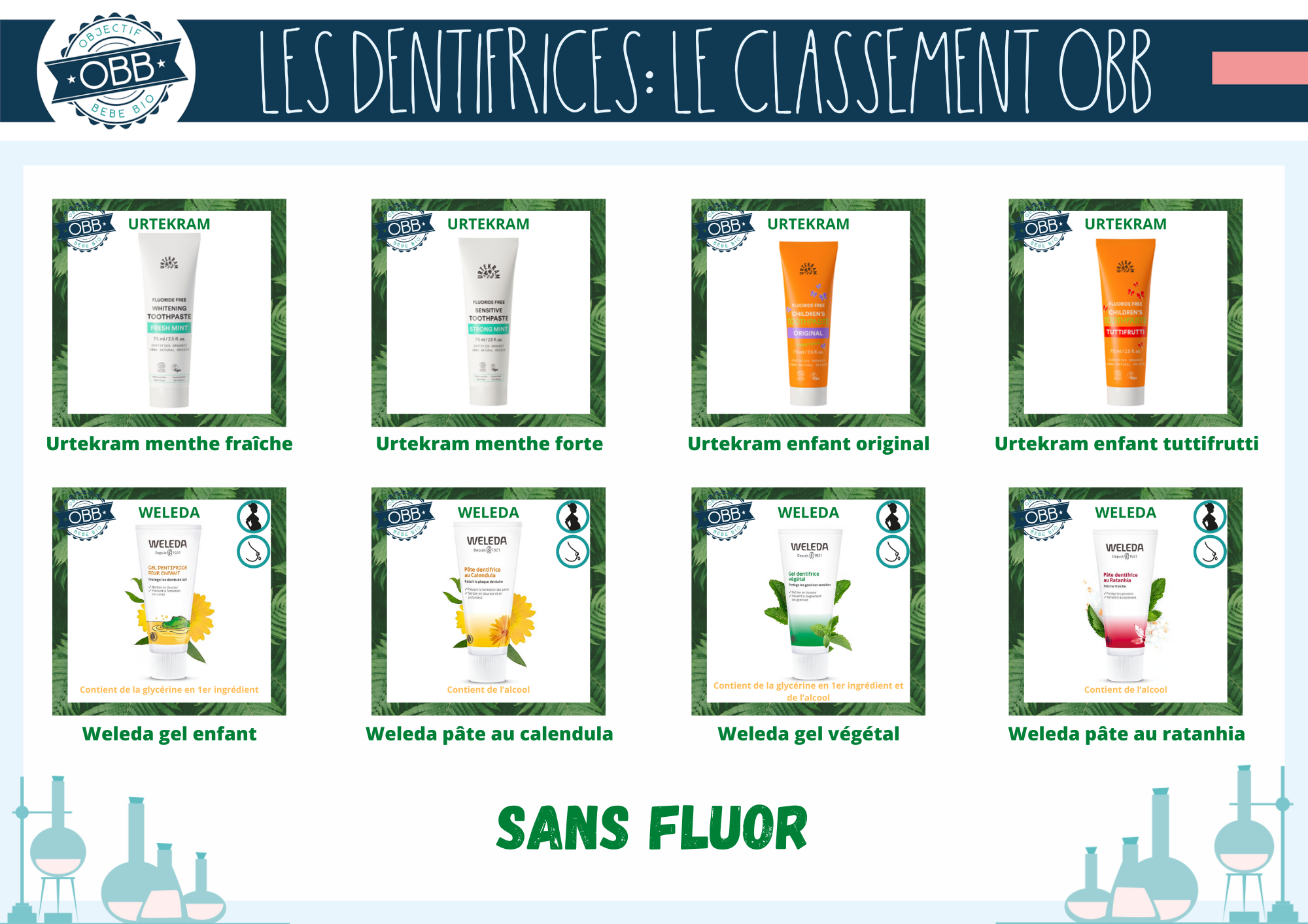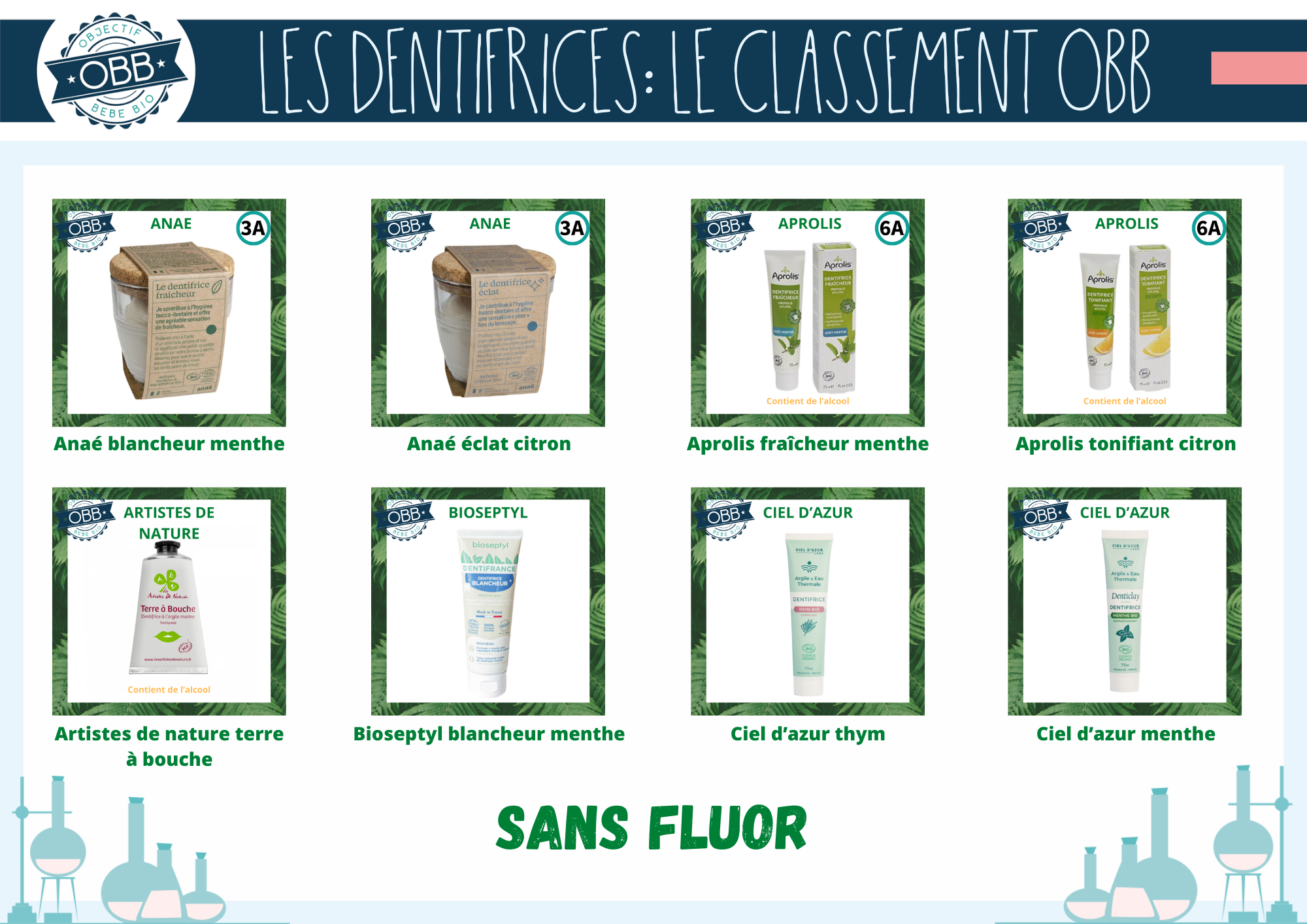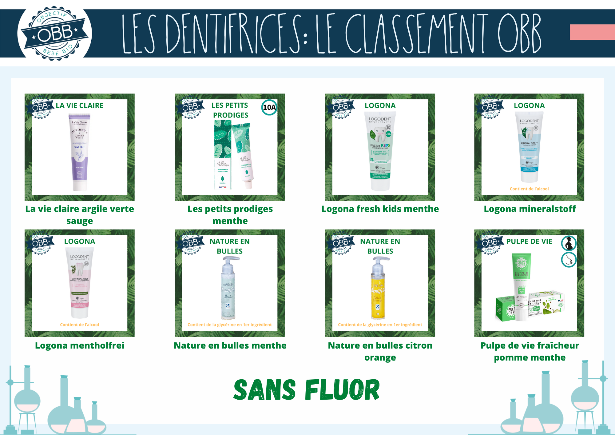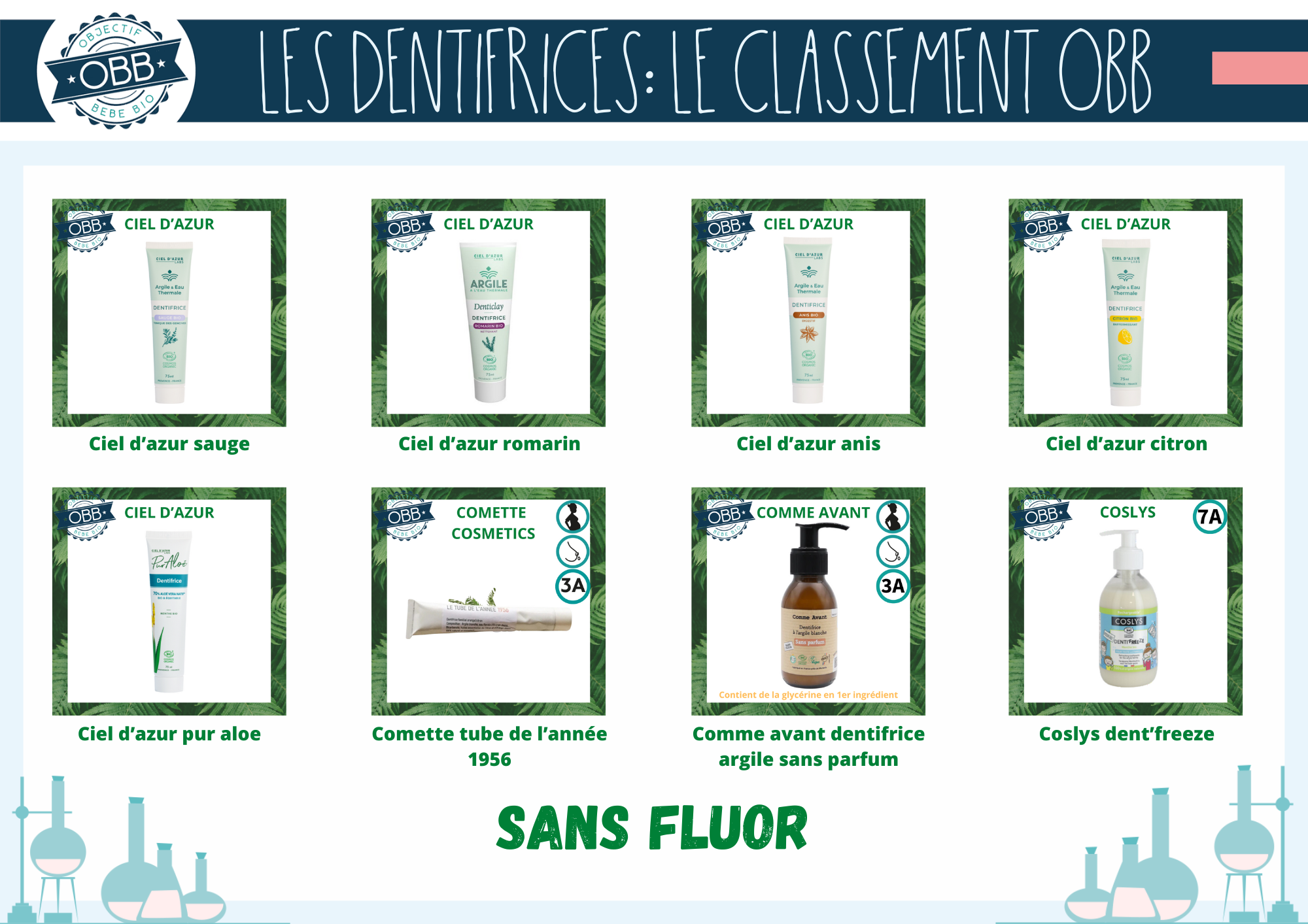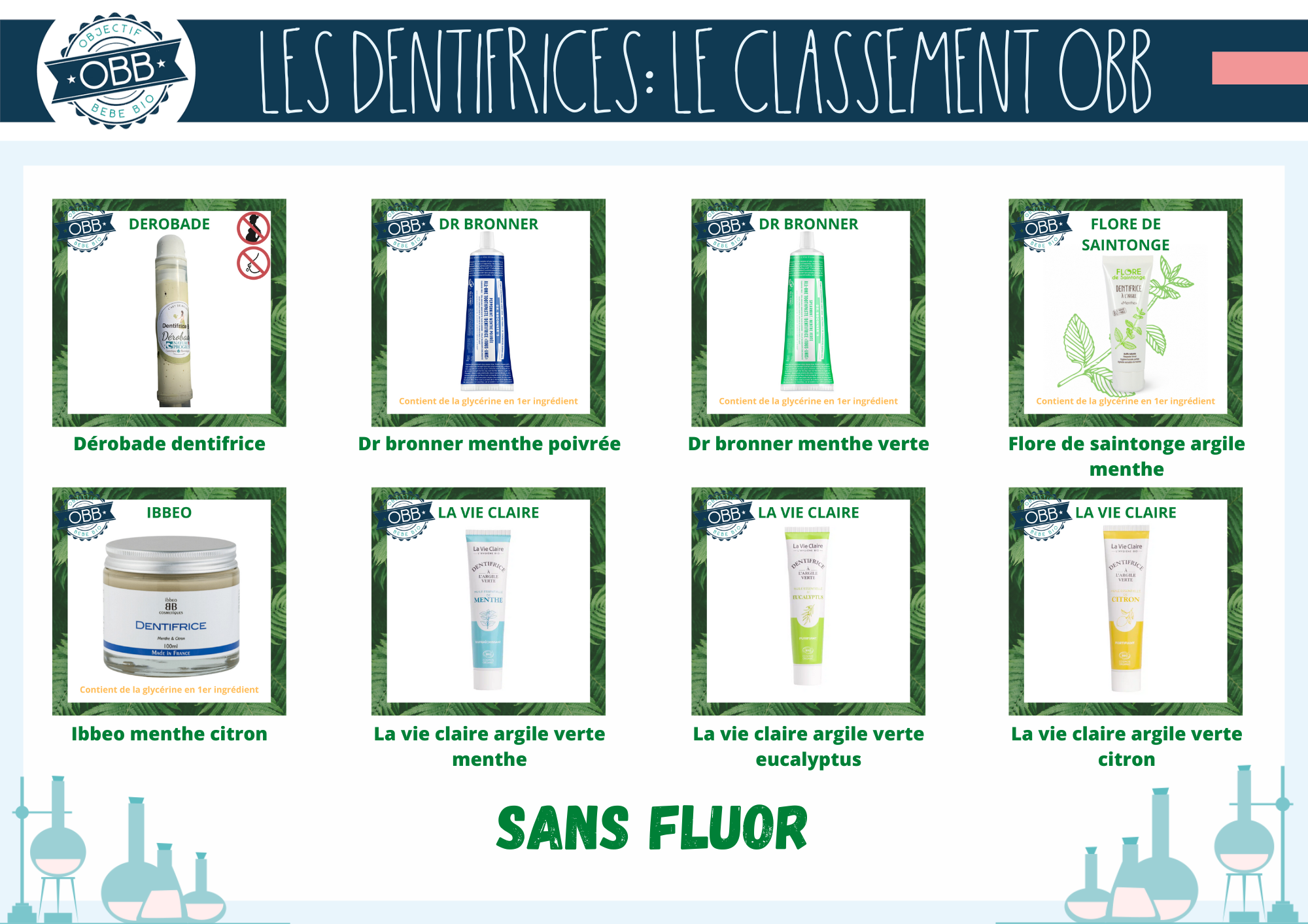 Les dentifrices en accord avec notre cahier des charge sans fluor: