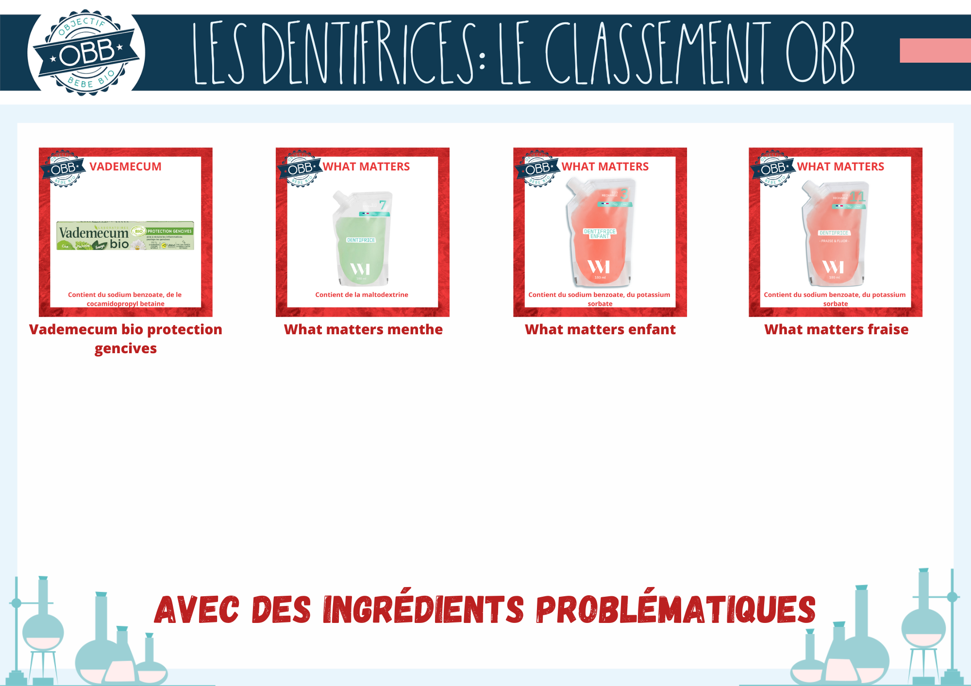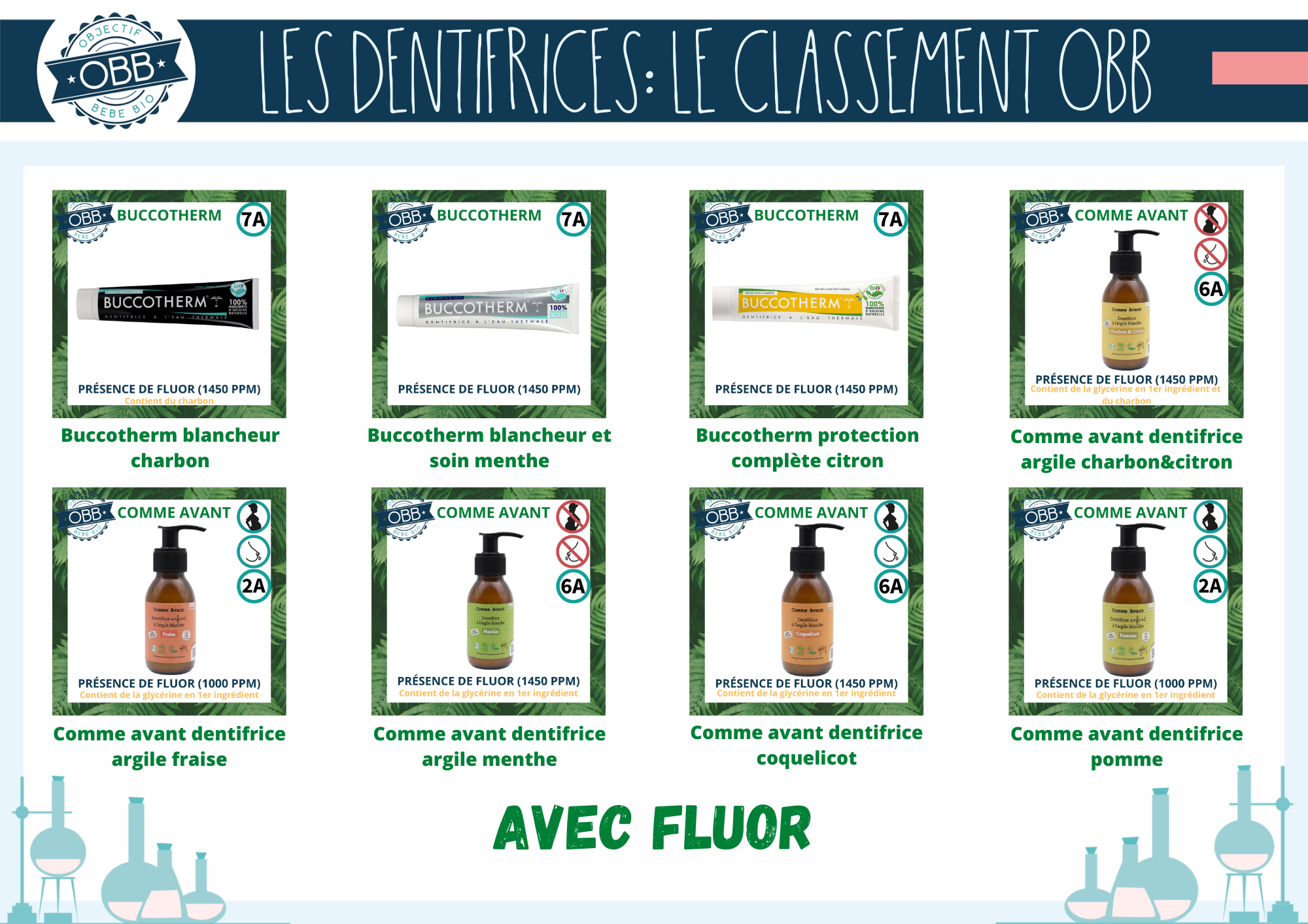 Ils sont peu nombreux mais certains fabricants proposent des dentifrices avec du fluor sans ingrédient problématique: Comme avant (code 10% : OBB10), buccothermn colgate, lilikiwi, what matters.