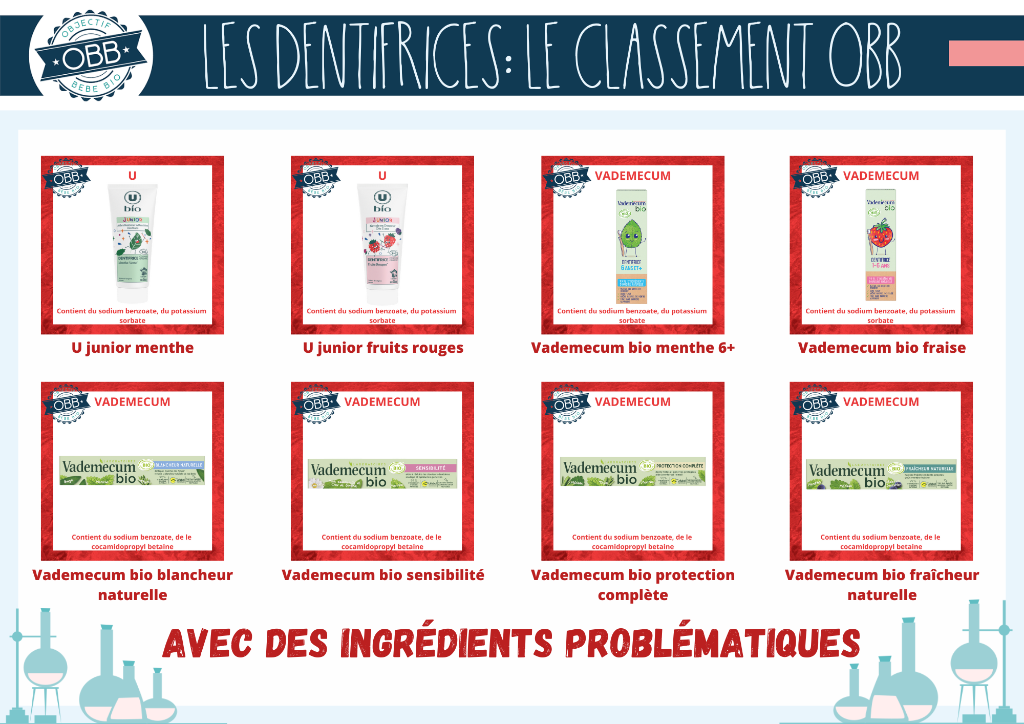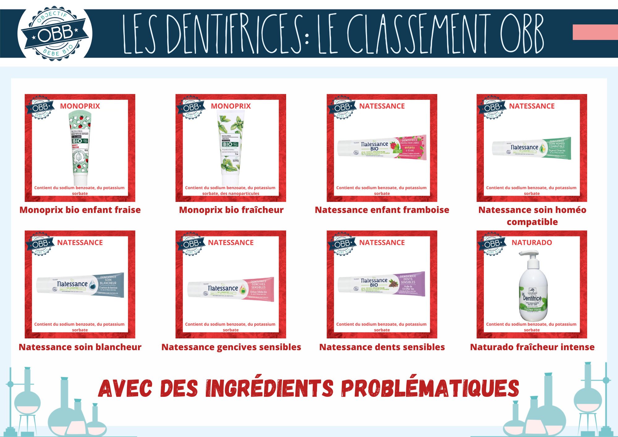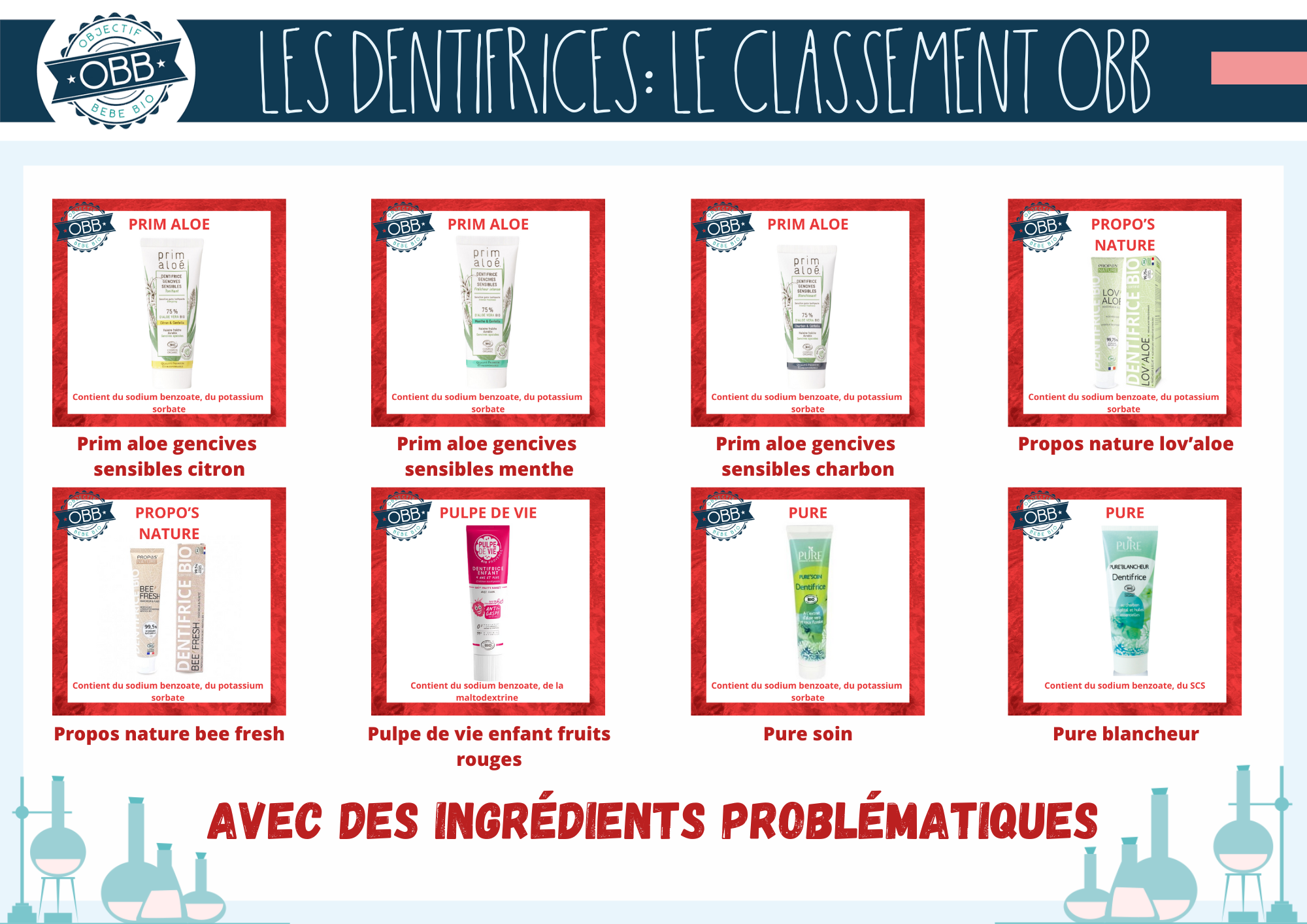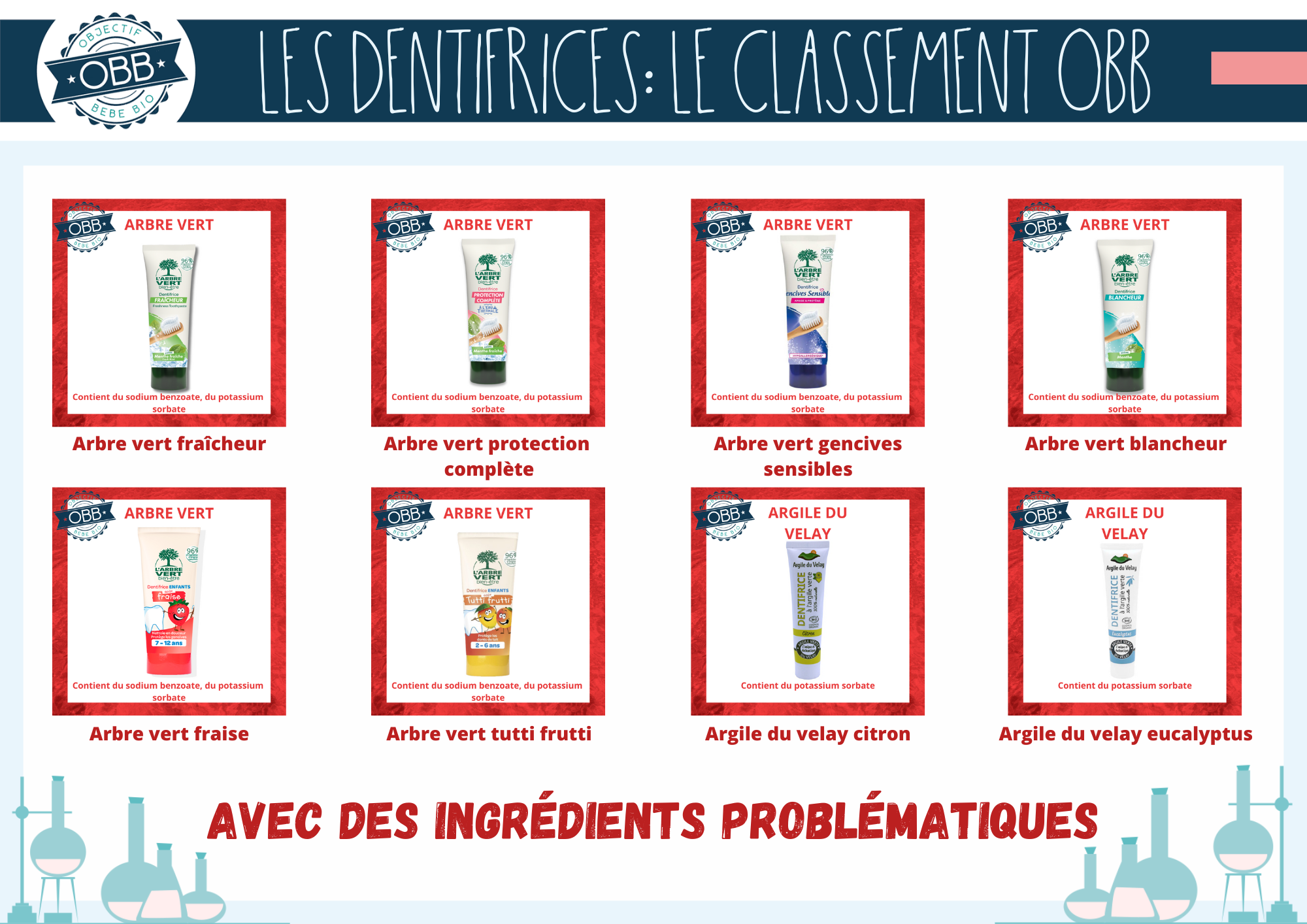 Pour faciliter votre recherche, nous avons donc classés les références par ordre alphabétique. Attention si un dentifrice d’une marque est en vert ça ne signifie pas que toutes les références sont sans ingrédients problématiques.