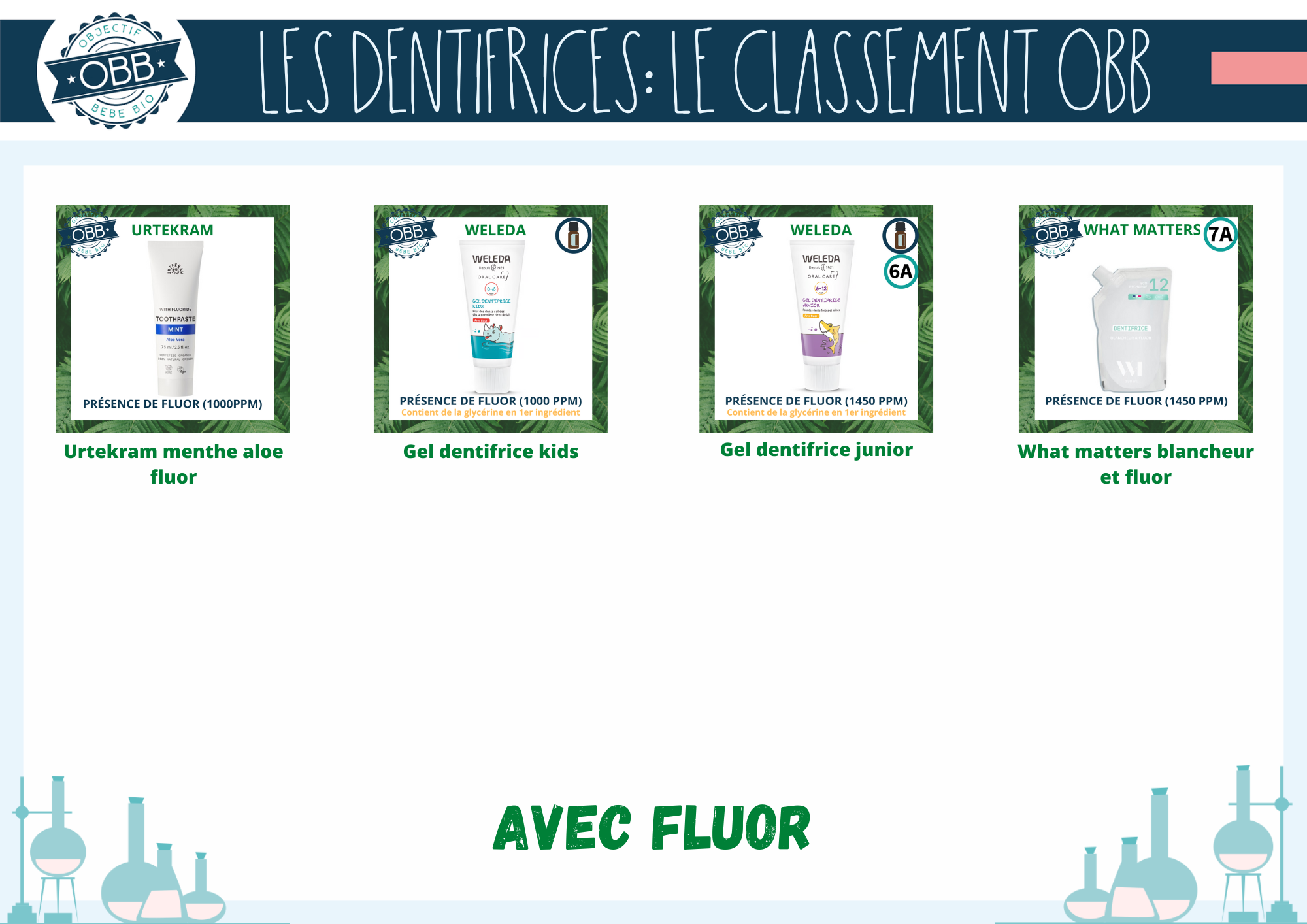 Les dentifrices en accord avec notre cahier des charge avec fluor: