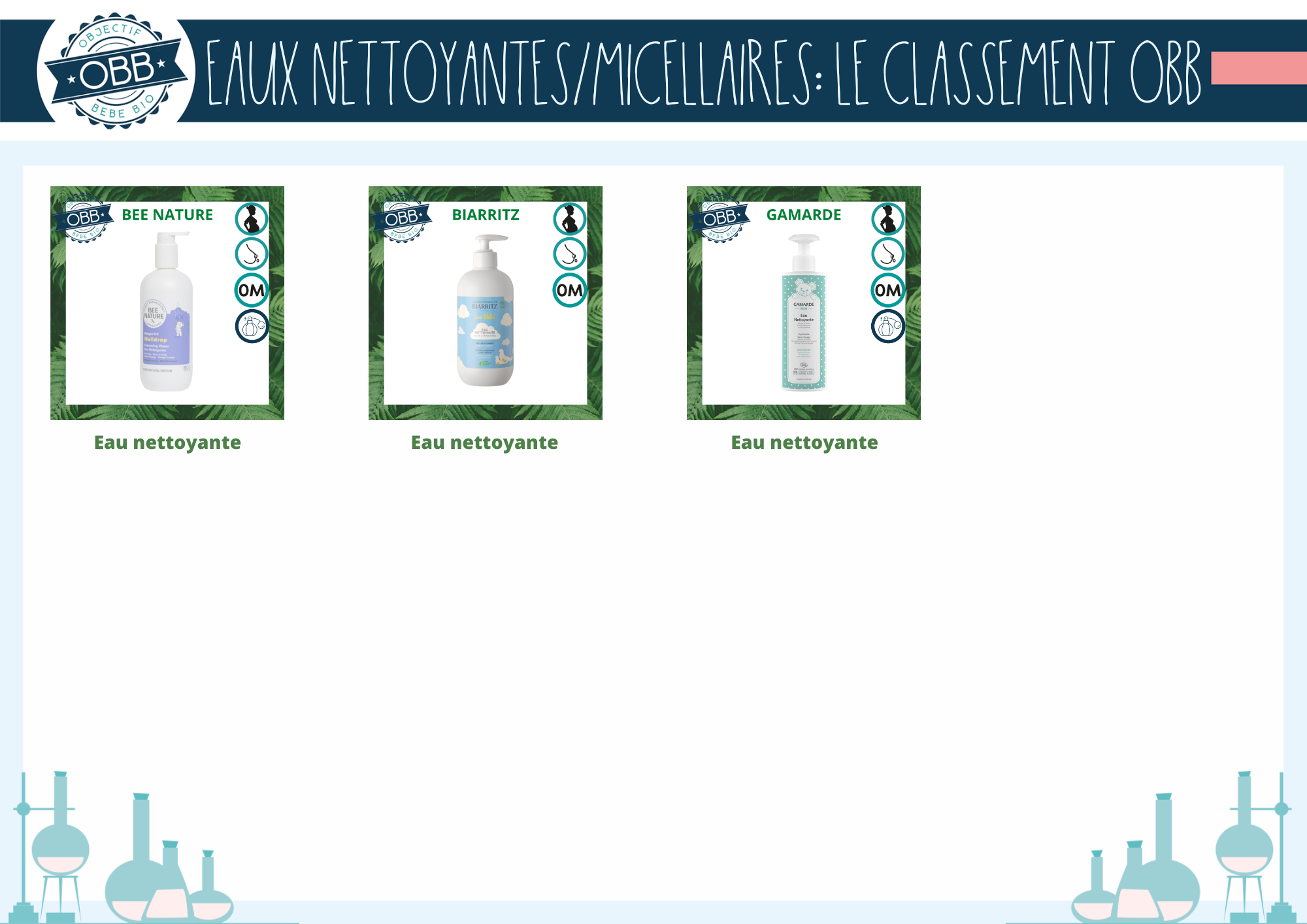 Planche des eaux nettoyantes et micellaires sans conservateur synthétique (bee nature, biarritz, gamarde)