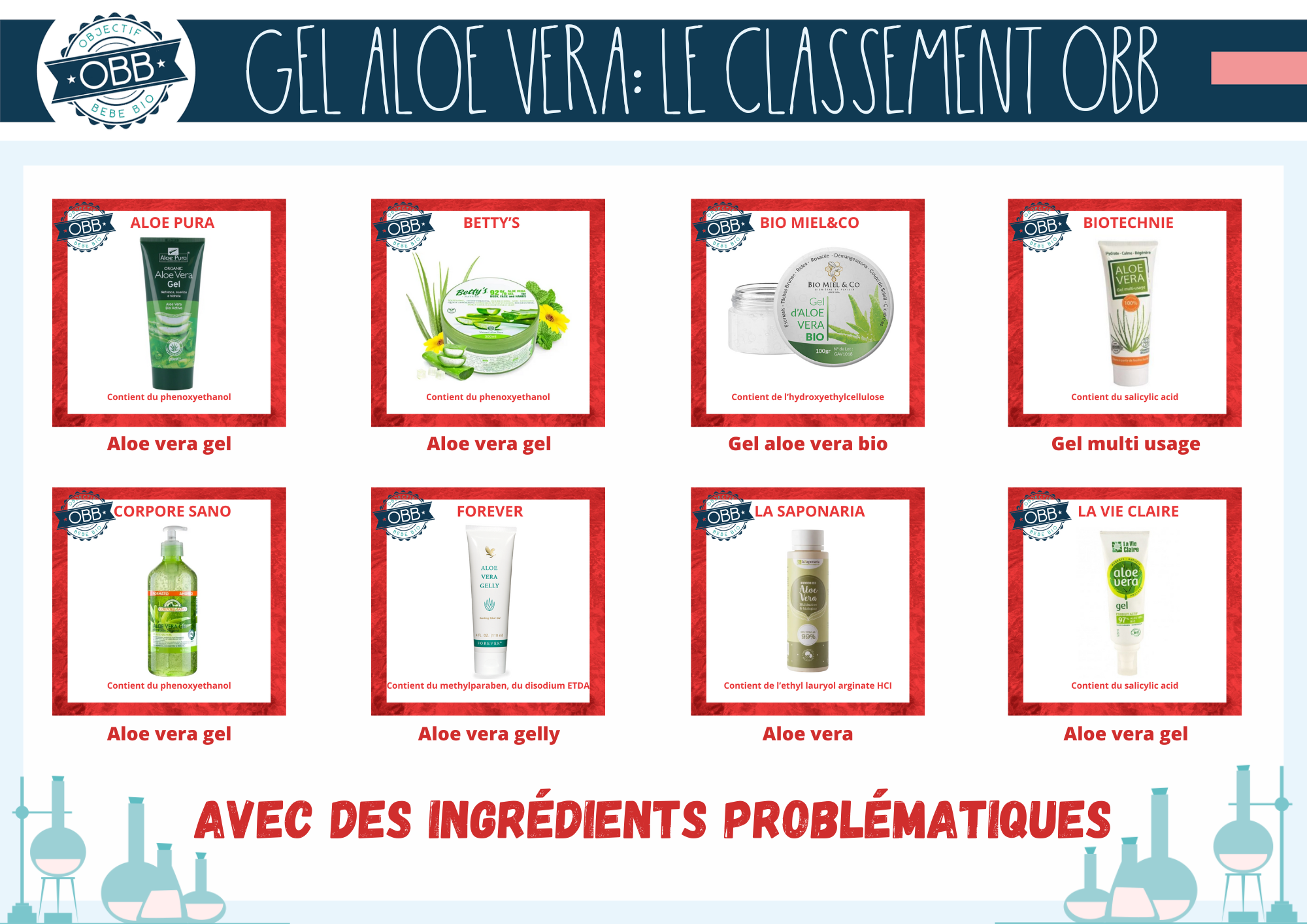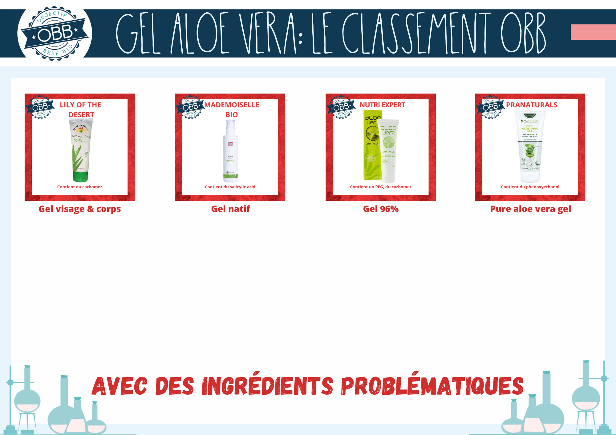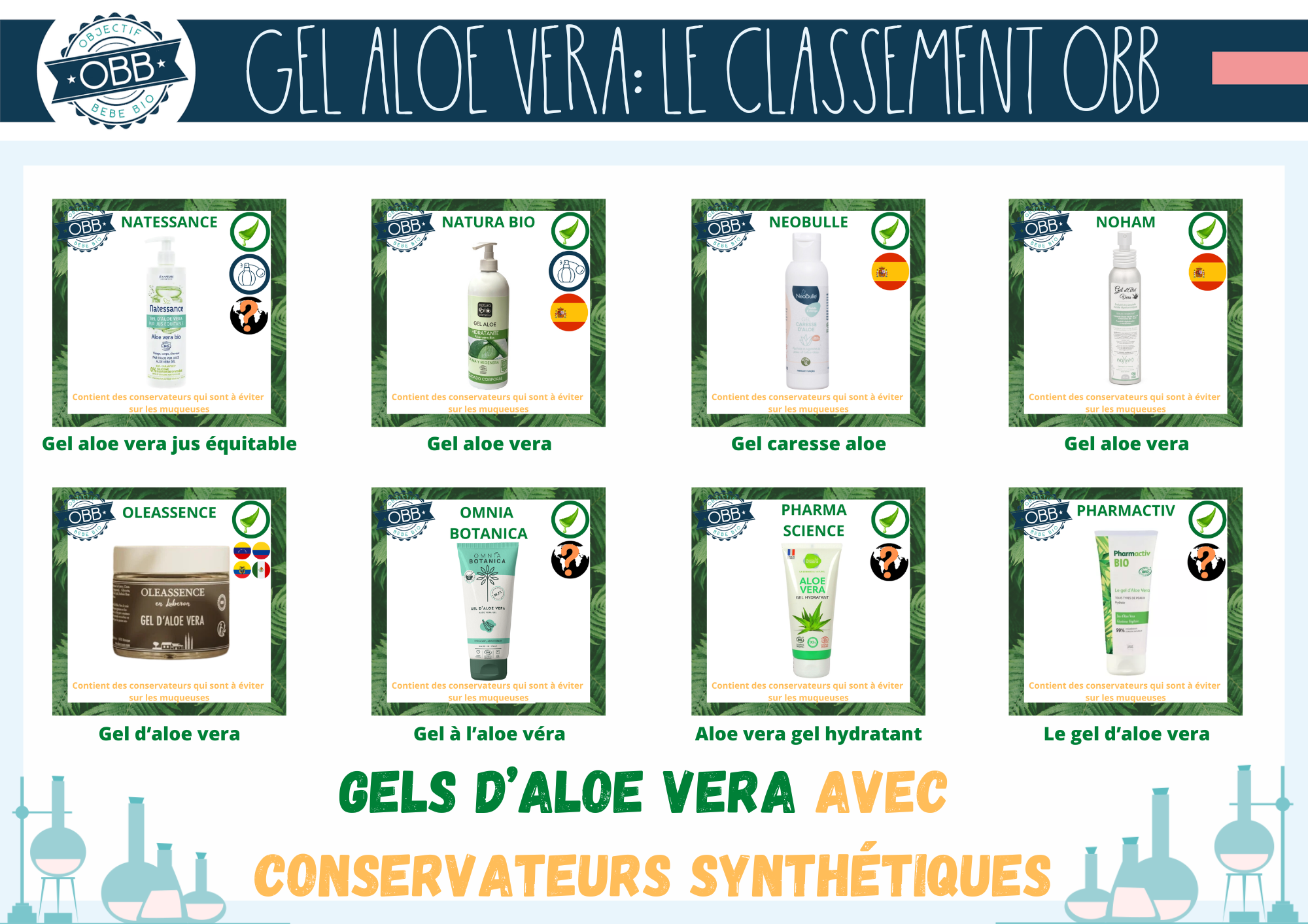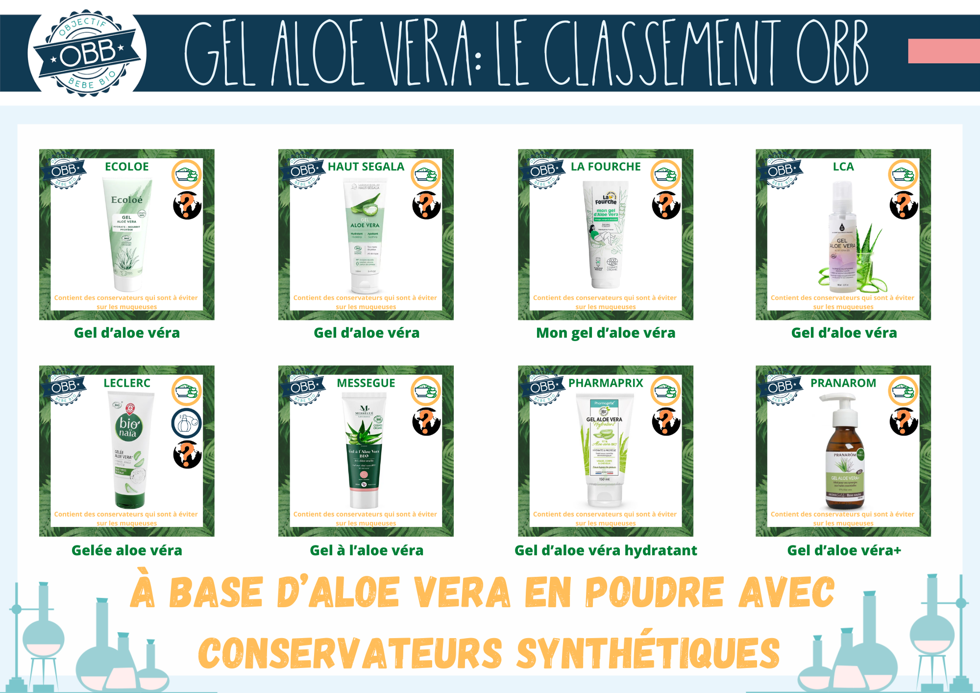 Vous trouverez des nouveaux pictogrammes sur les visuels de ce classement. Les premiers pour signaler la forme de l’aloe vera et la présence de parfum.