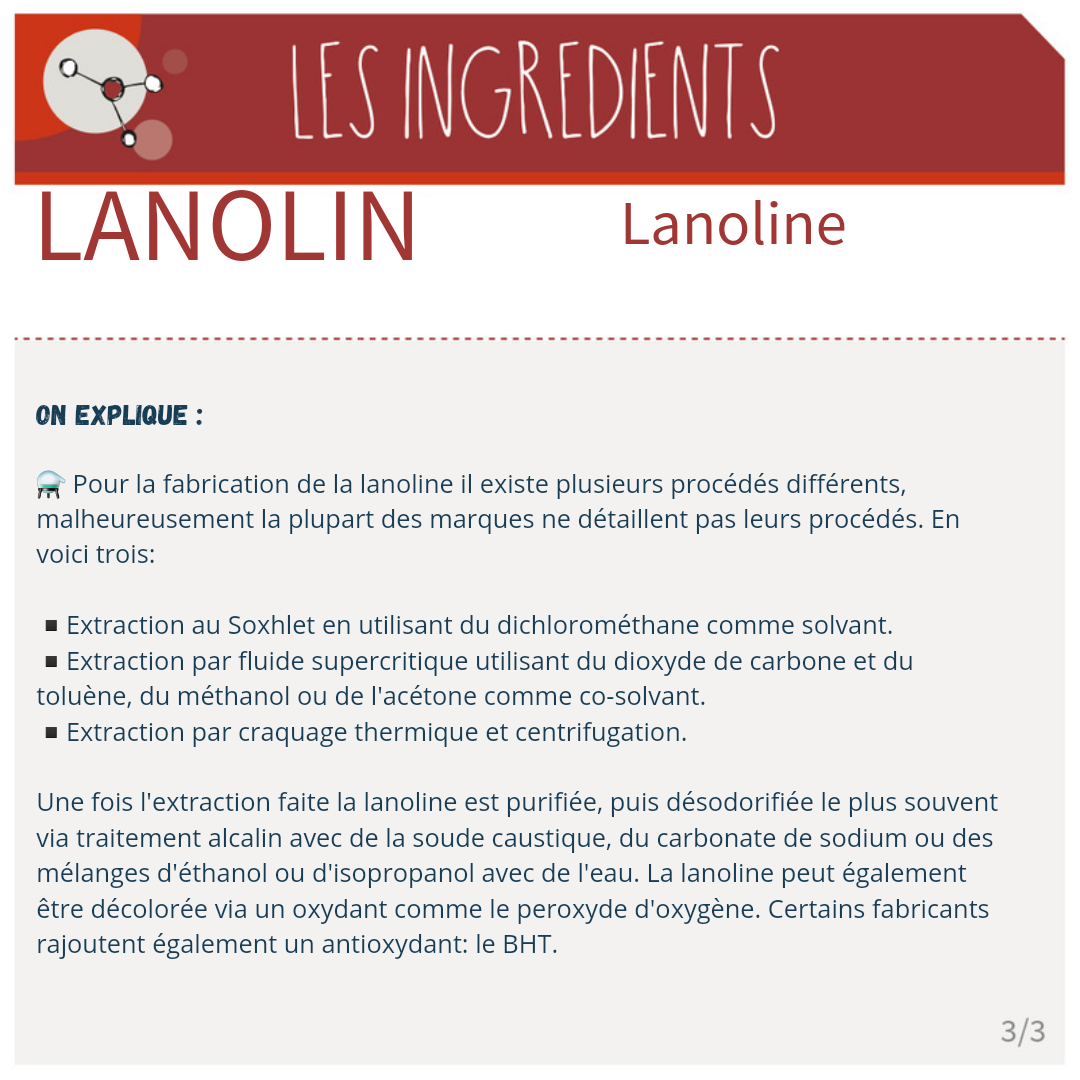 Pour la fabrication de la lanoline il existe plusieurs procédés différents, malheureusement la plupart des marques ne détaillent pas leurs procédés.
