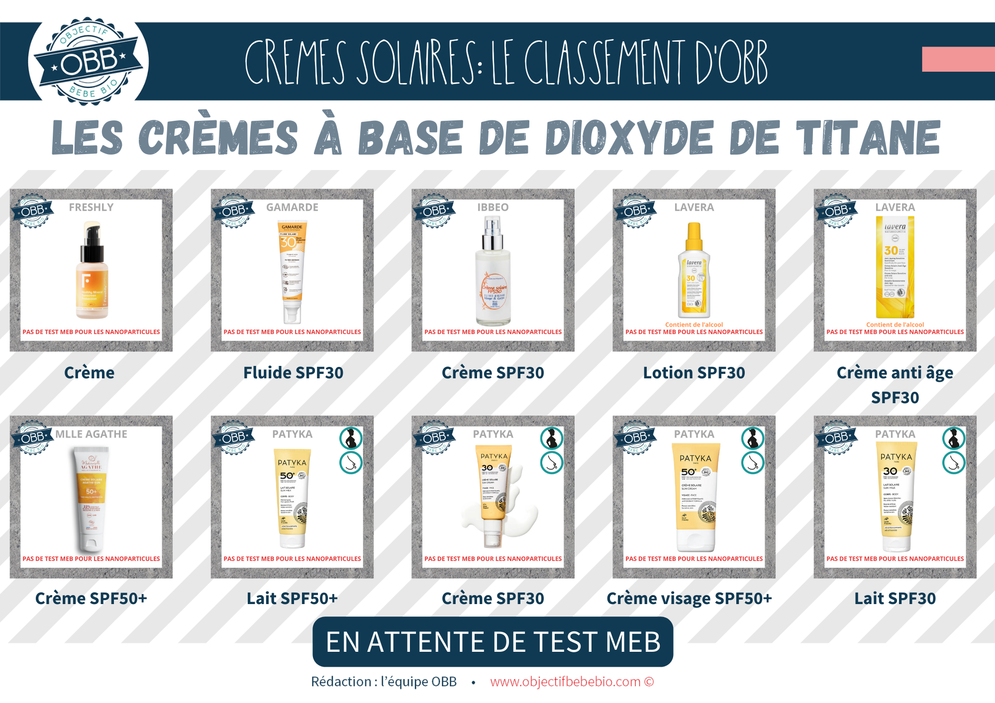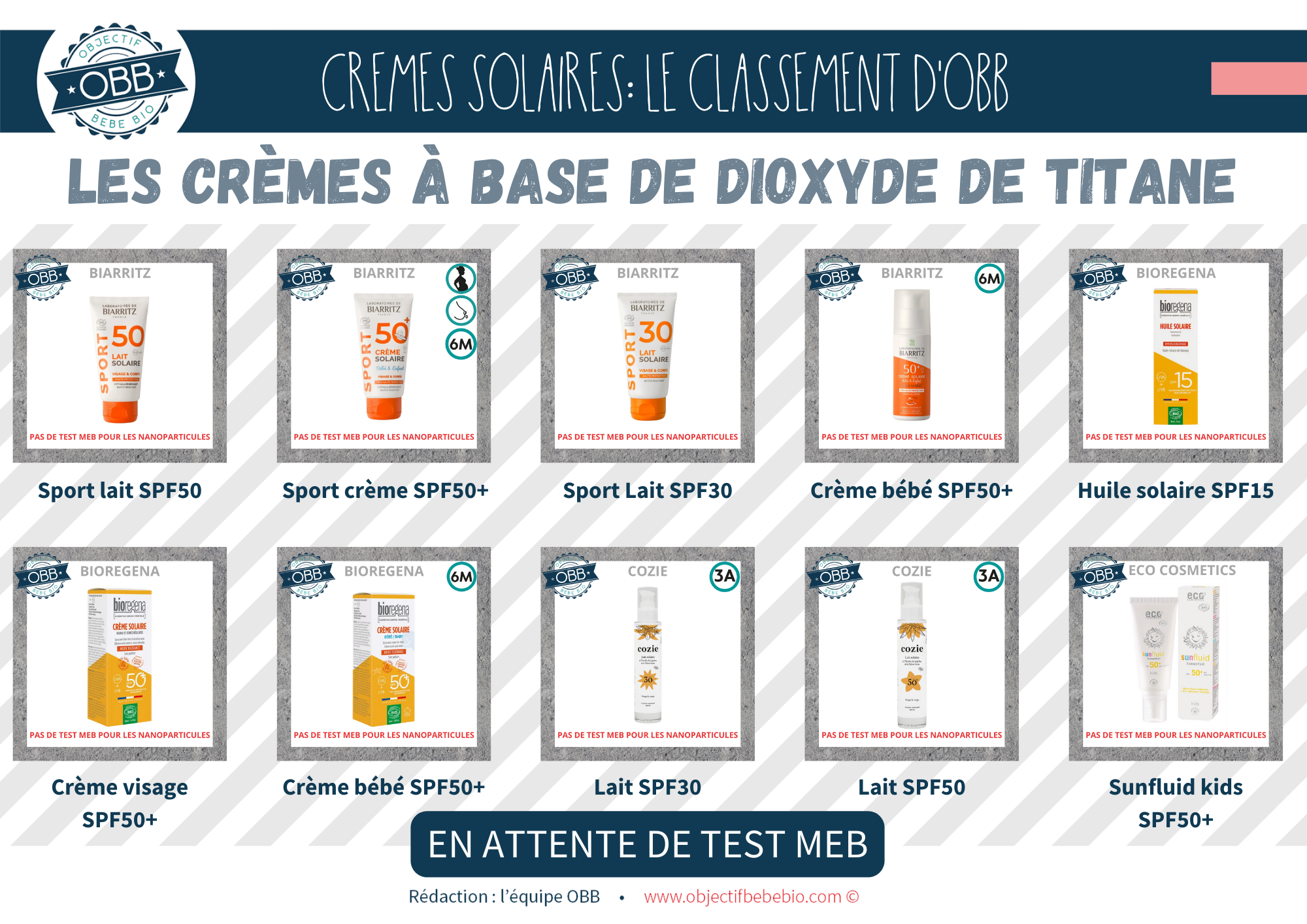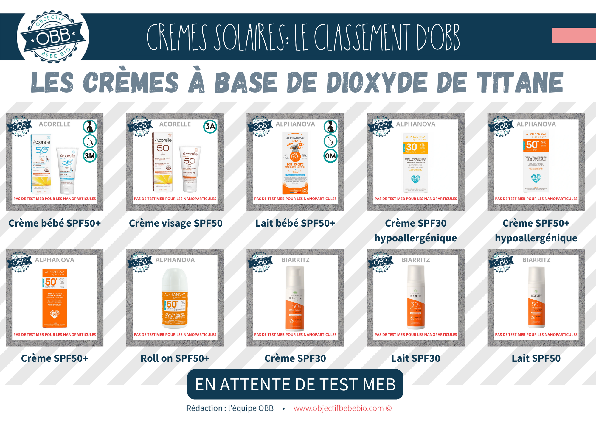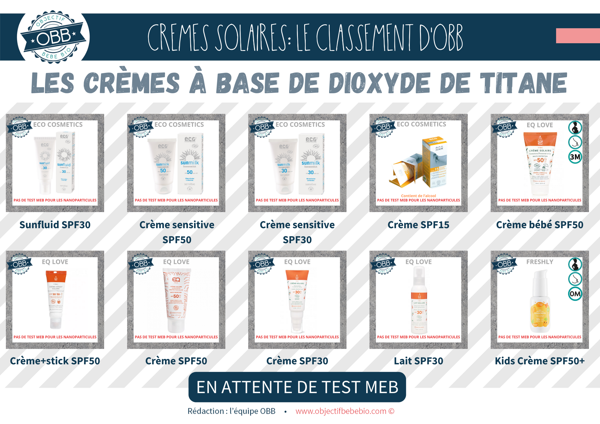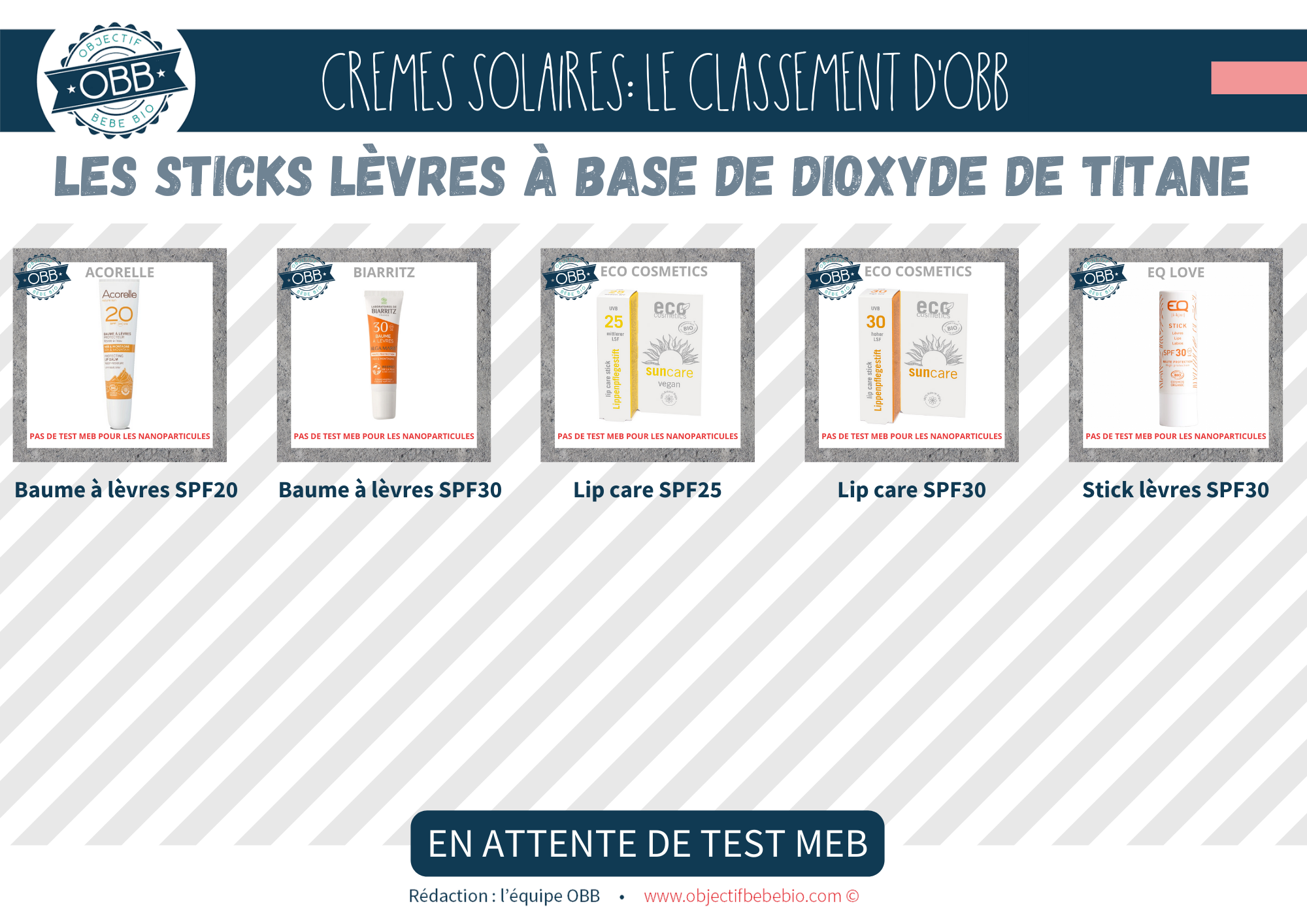 Notre classement se base sur les INCI connues à ce jour. Il est impossible pour nous de nous baser sur des dire « On a mis la mention [NANO] mais il n’y en a pas » ou au contraire « On n’a pas de mention [NANO] parce que notre fournisseur nous le confirme (sans test MEB) »