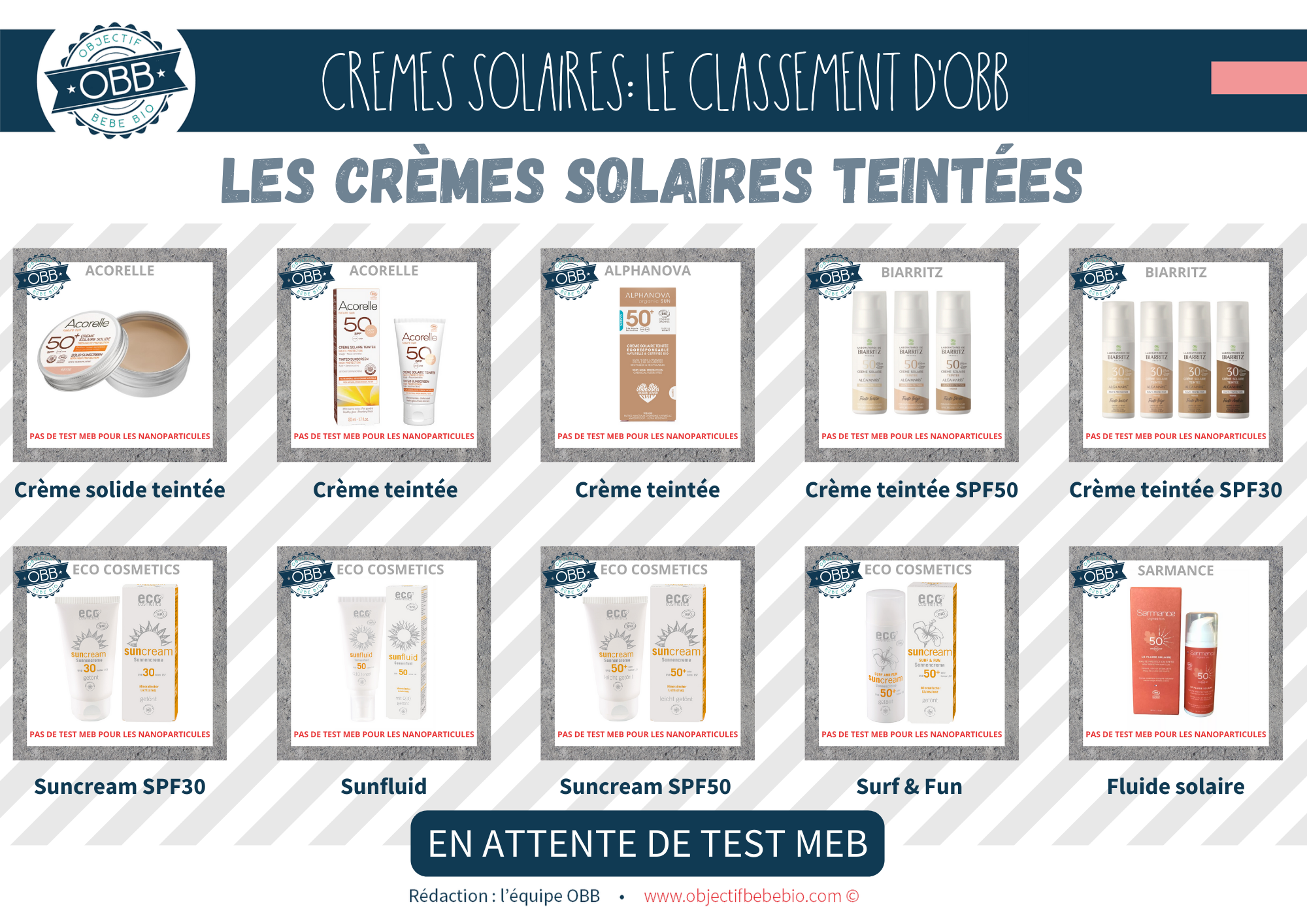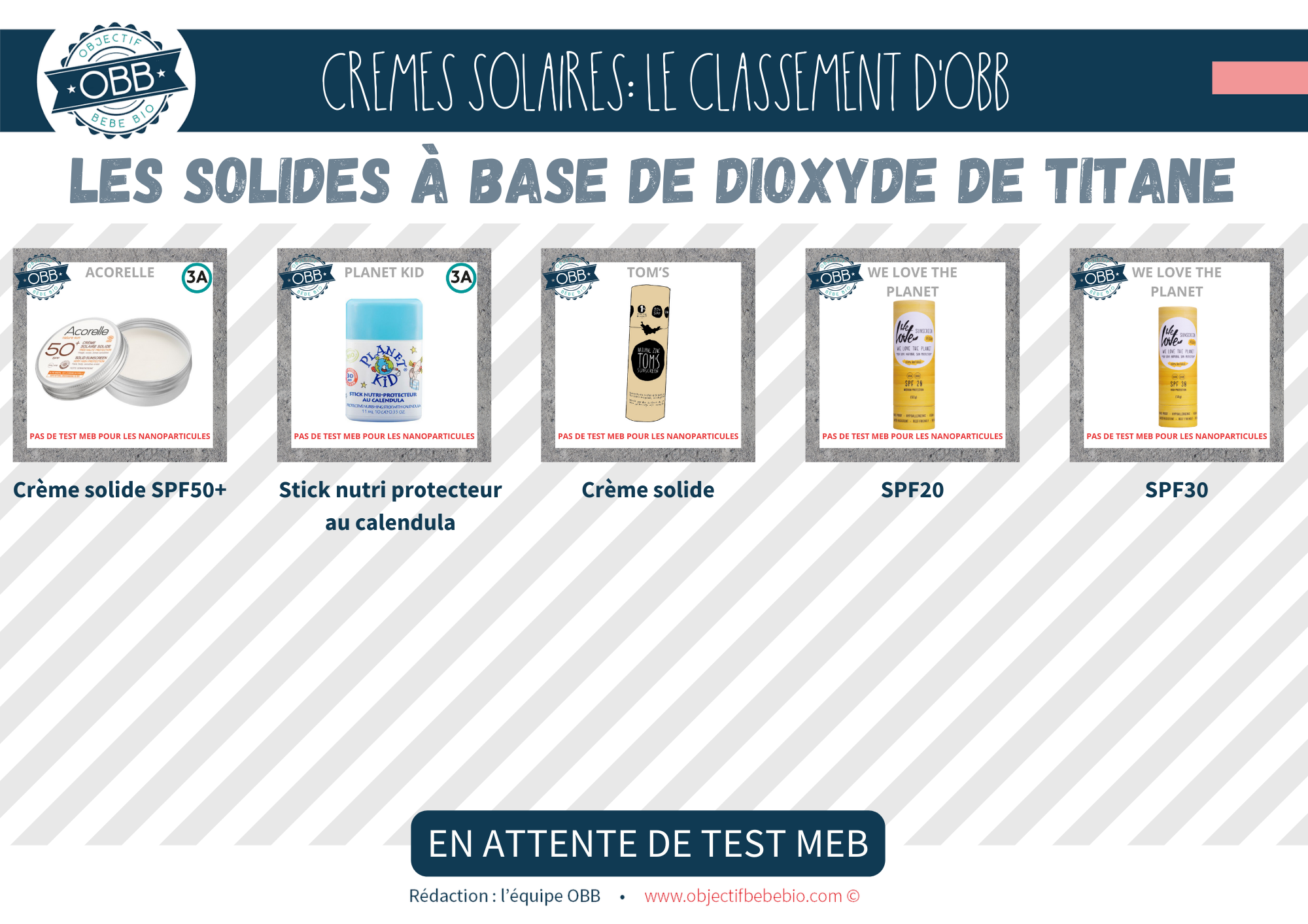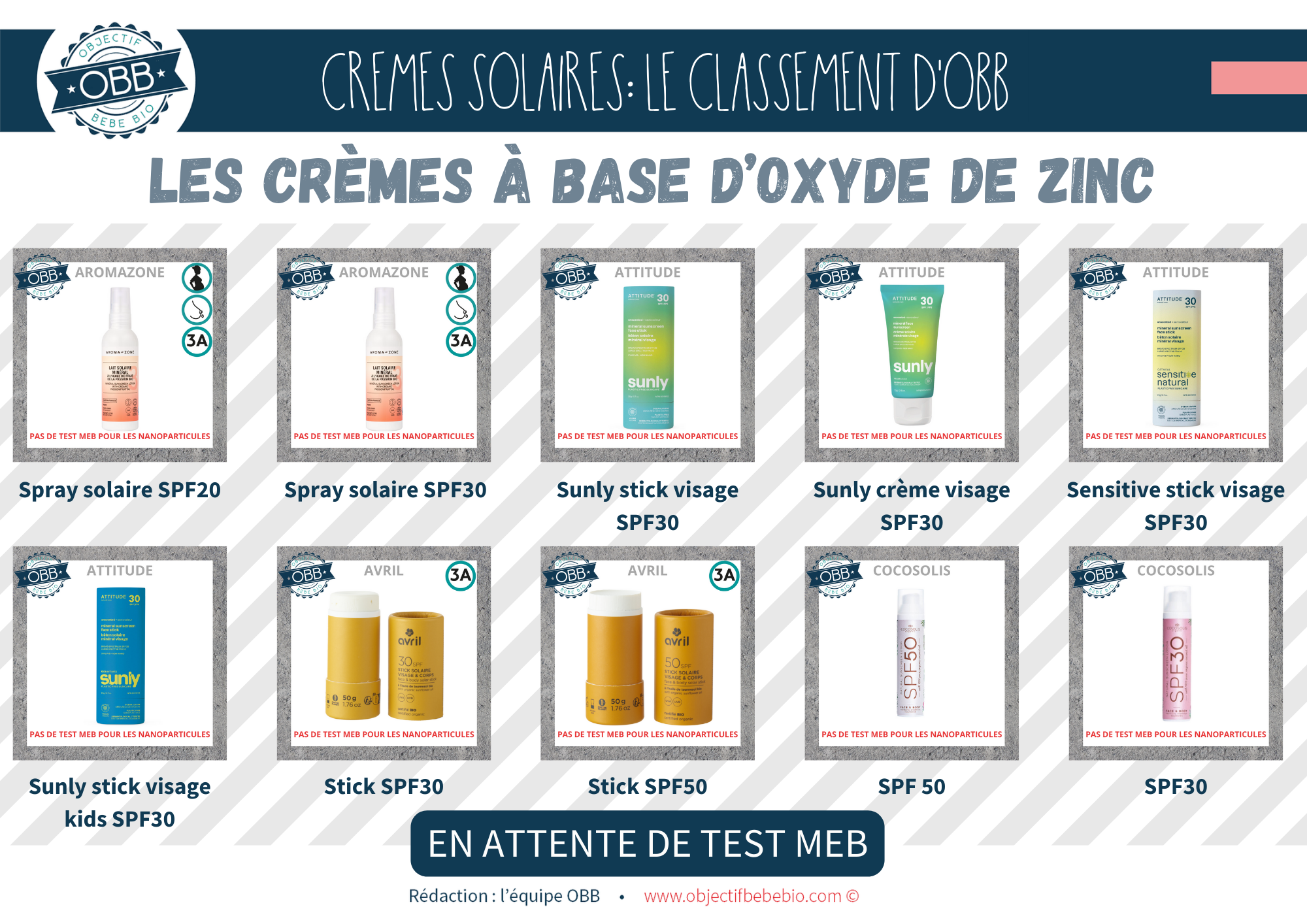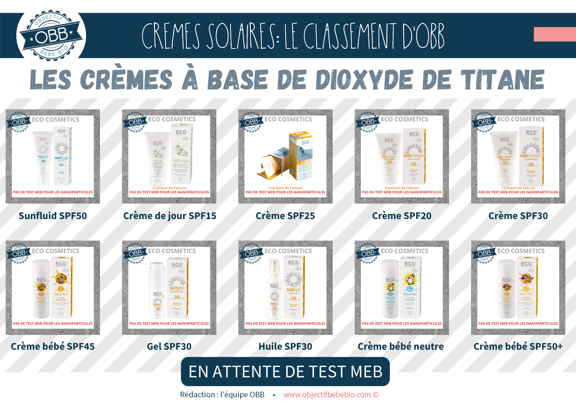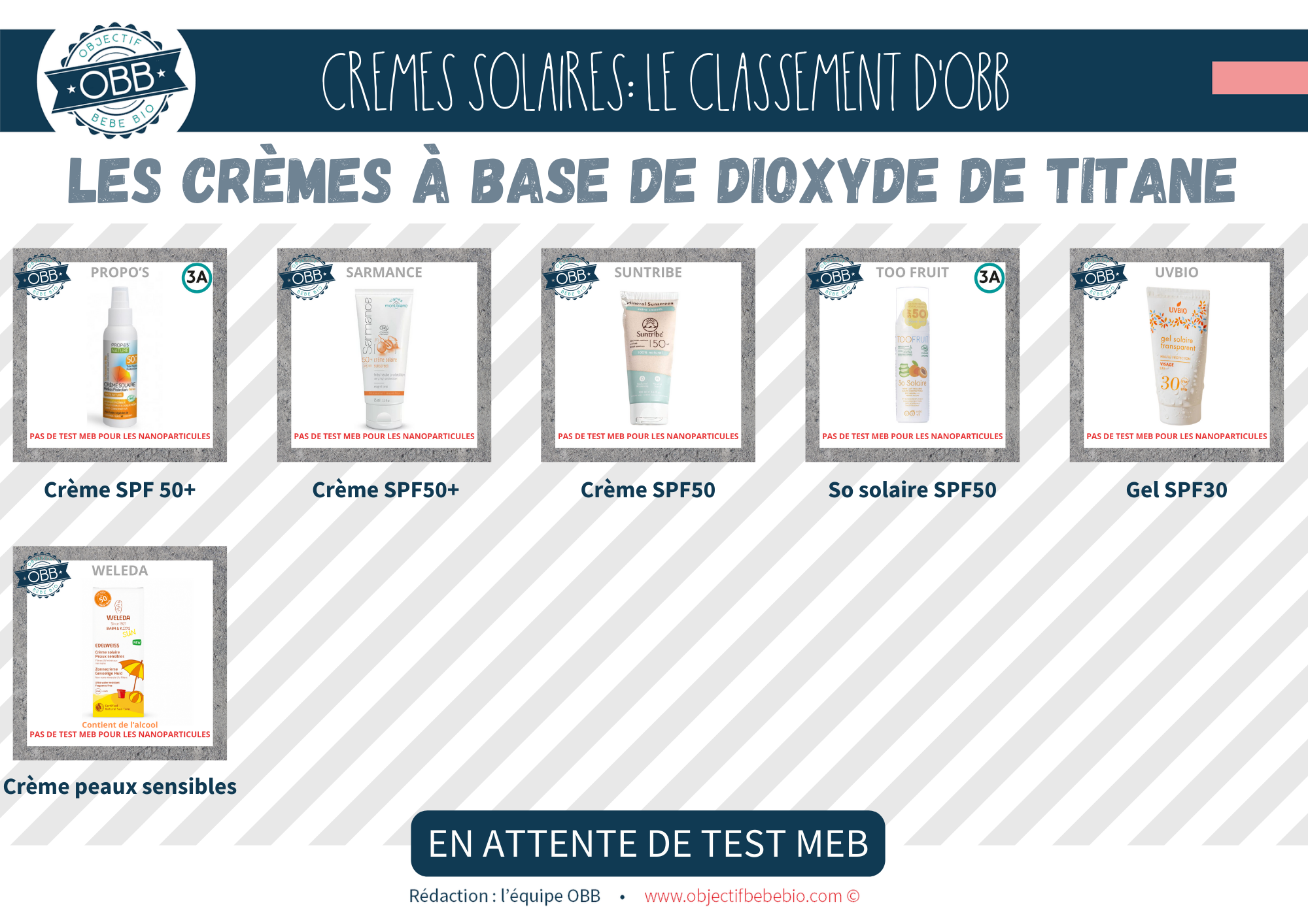 Notre classement se base sur les INCI connues à ce jour. Il est impossible pour nous de nous baser sur des dire « On a mis la mention [NANO] mais il n’y en a pas » ou au contraire « On n’a pas de mention [NANO] parce que notre fournisseur nous le confirme (sans test MEB) »