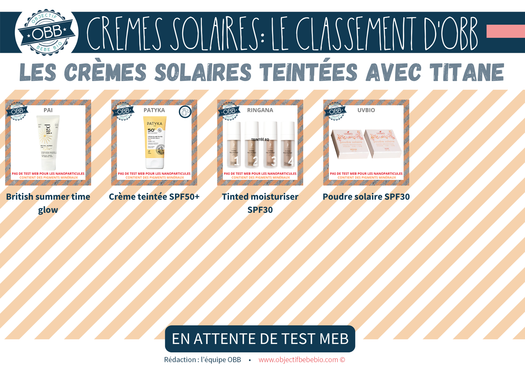 Les crèmes solaires ont déjà dans leur compo beaucoup d’ingrédients pour la plupart. Choisir une crème solaire teintée c’est prendre une crème avec encore plus d’ingrédients qui n’apportent pas de protection contre les UV. Vous trouverez des marques qui proposent différents formats et teintes comme Acorelle, Alphanova, Biarritzn Sarmance, Uv bio, Suntribe. Comme pour les autres types de crèmes il y a 3 catégories.