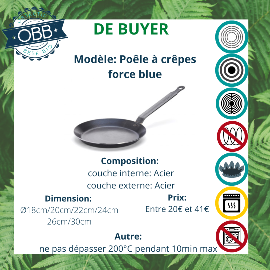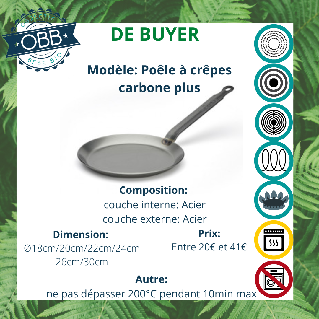 Il est important de choisir des matériaux qui minimisent le risque de contact avec des molécules problématiques. Nous vous conseillons d’utiliser des ustensiles comme vos crêpières INOX/CUIVRE ou ACIER. Vous trouverez plus de détail dans notre article ci dessous : Quelles sont les matières à privilégier et celles à éviter ?