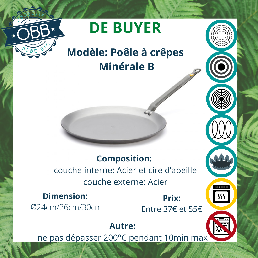 Il est important de choisir des matériaux qui minimisent le risque de contact avec des molécules problématiques. Nous vous conseillons d’utiliser des ustensiles comme vos crêpières INOX/CUIVRE ou ACIER. Vous trouverez plus de détail dans notre article ci dessous : Quelles sont les matières à privilégier et celles à éviter ?