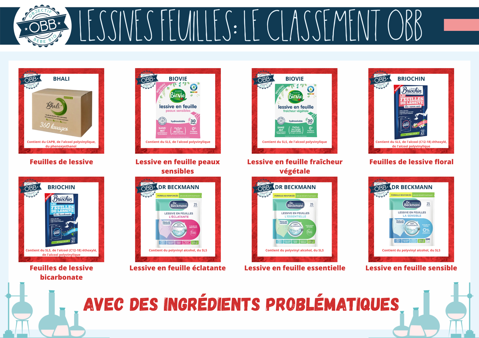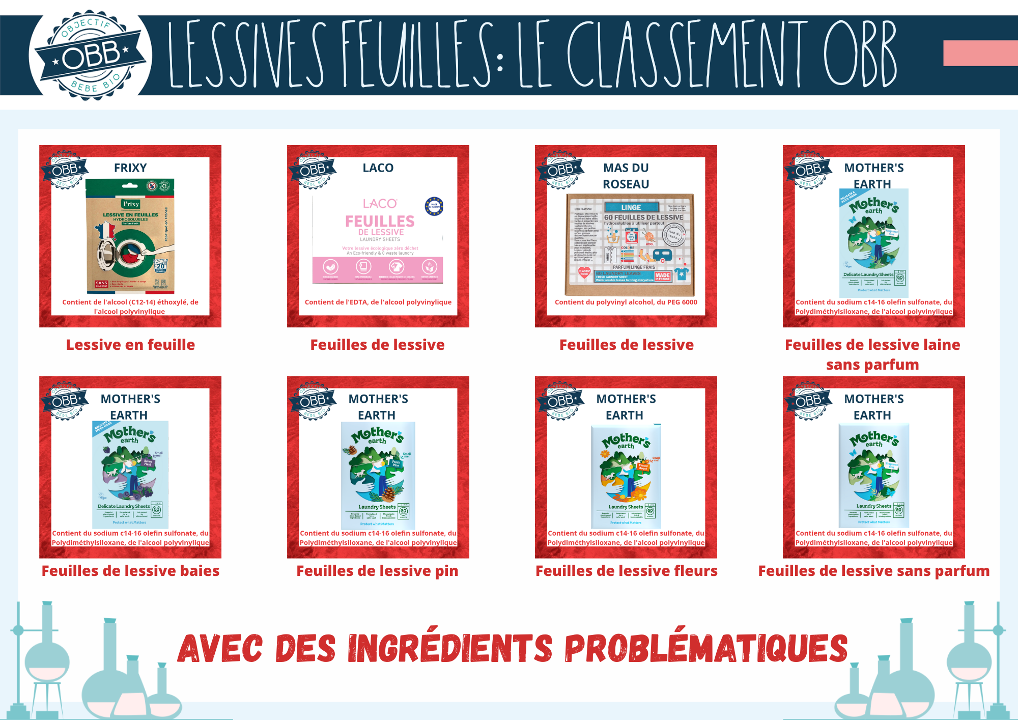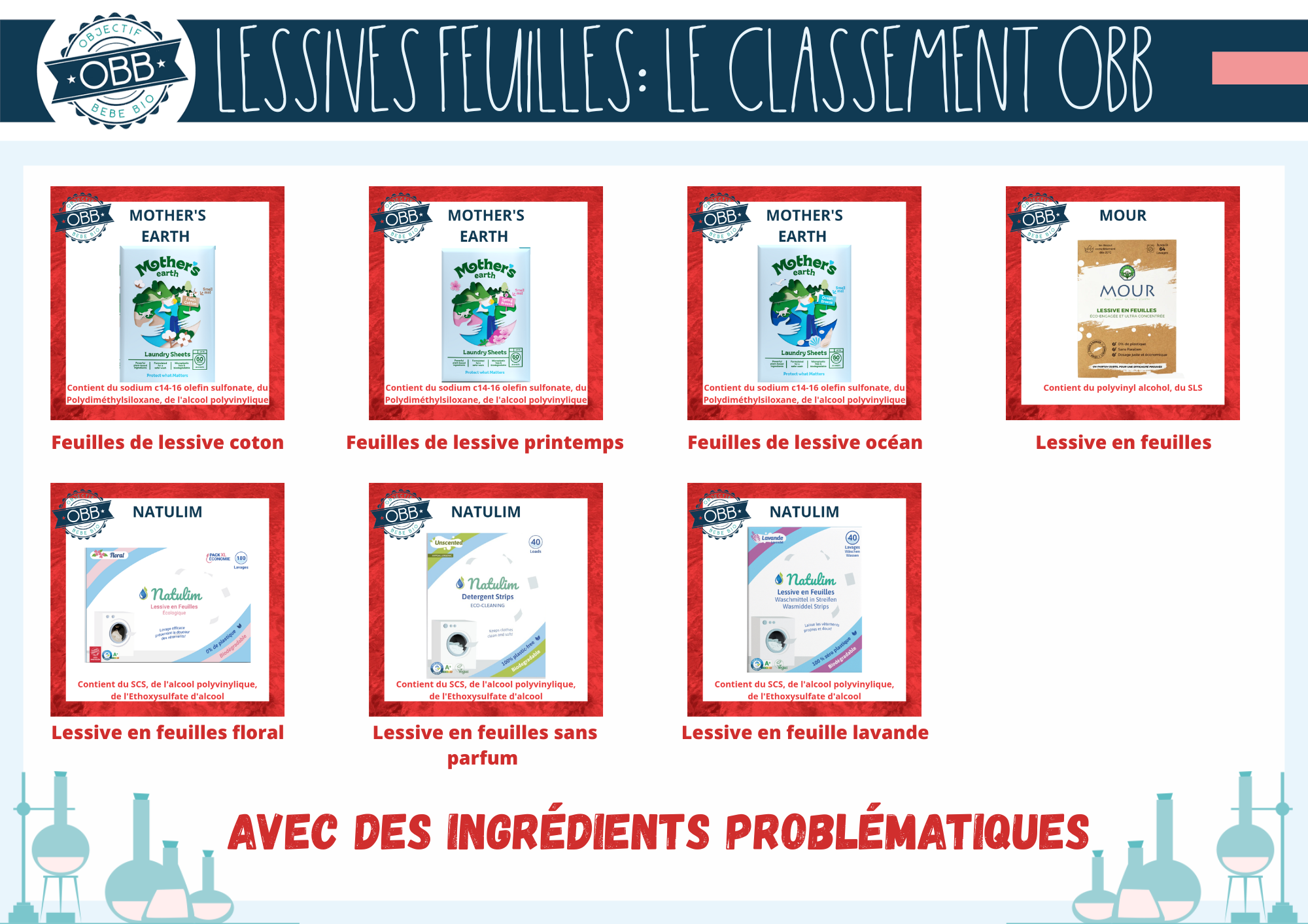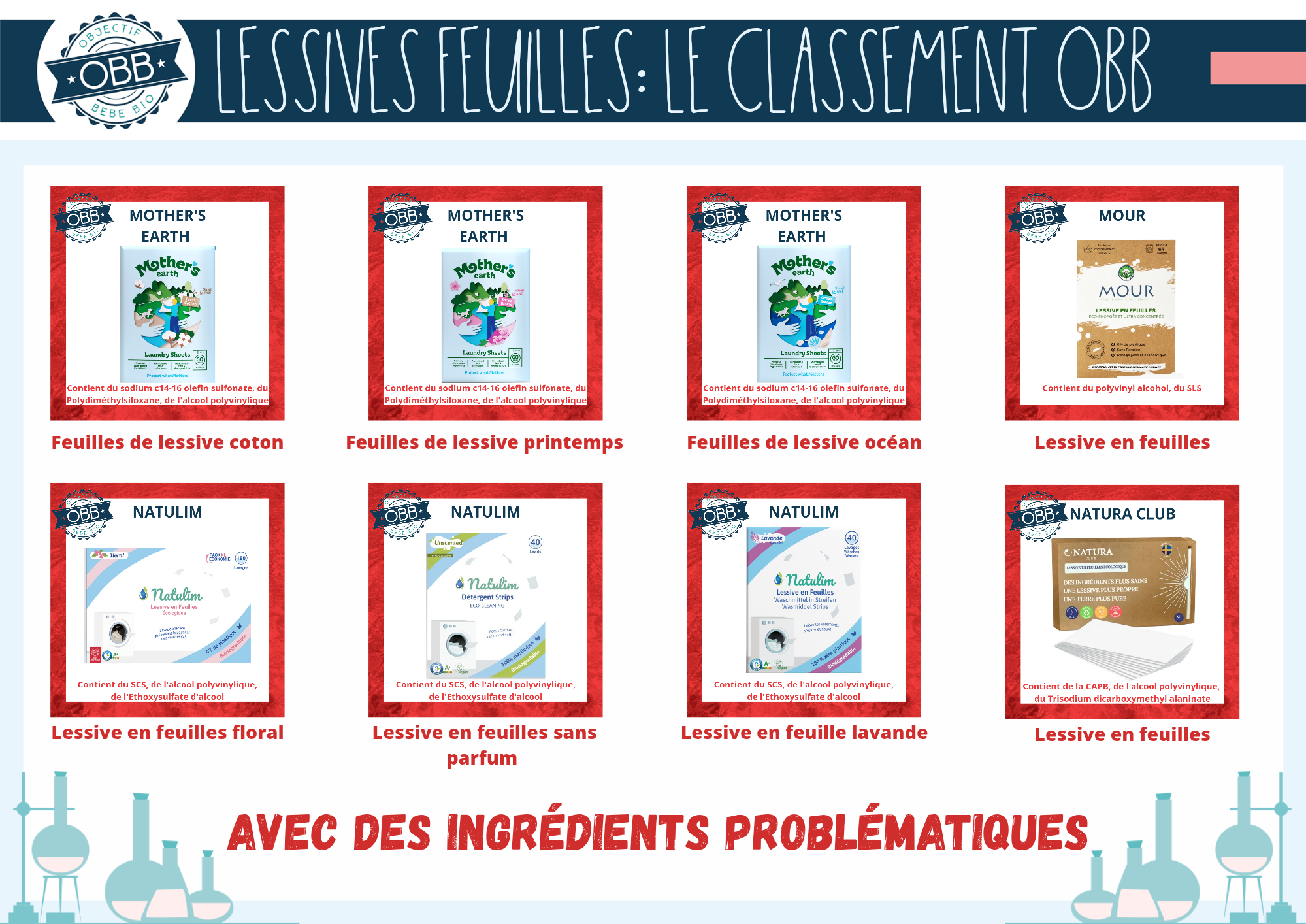 Lessives en feuille avec des ingrédients problématiques: