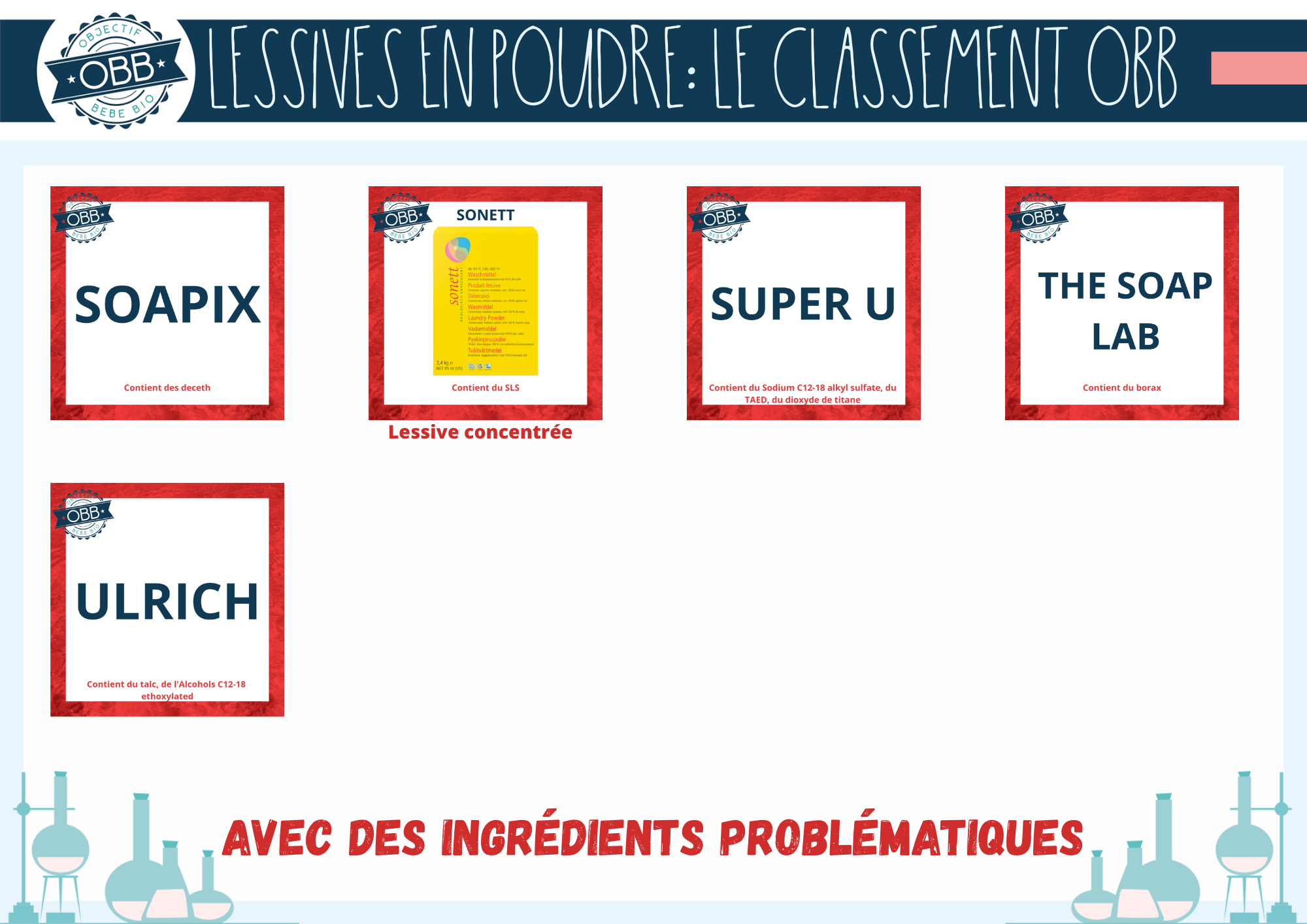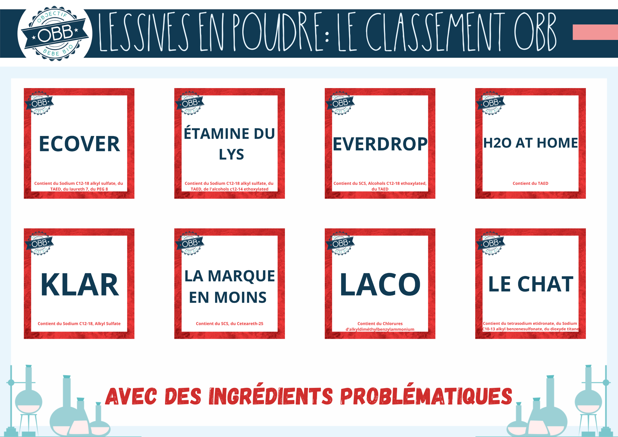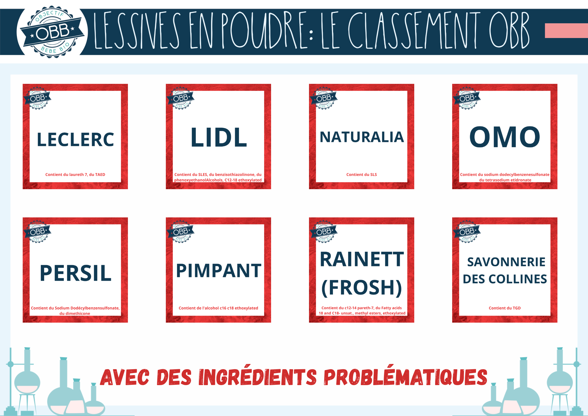 Les lessives liquides qui contiennent des ingrédients problématiques:
