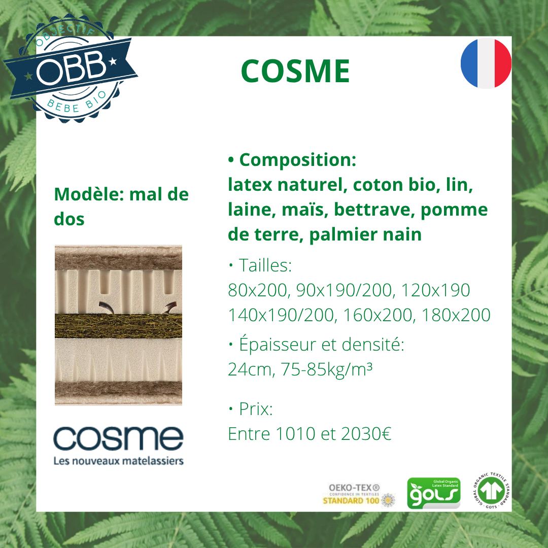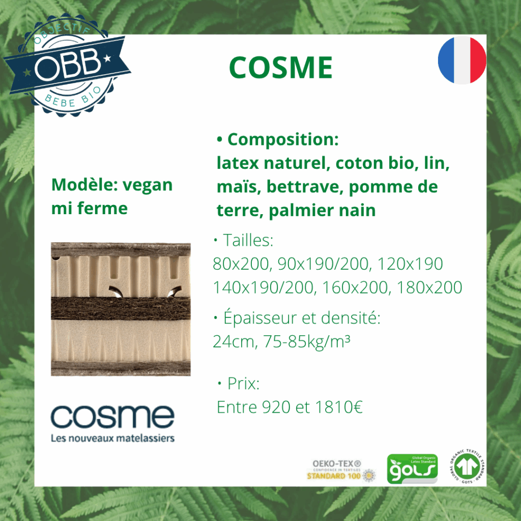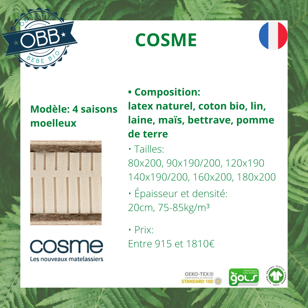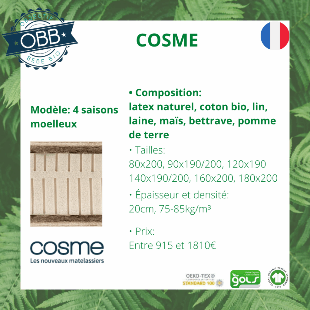 COSME retrouvez leurs matelas en cliquant ICI ( lien affilié)