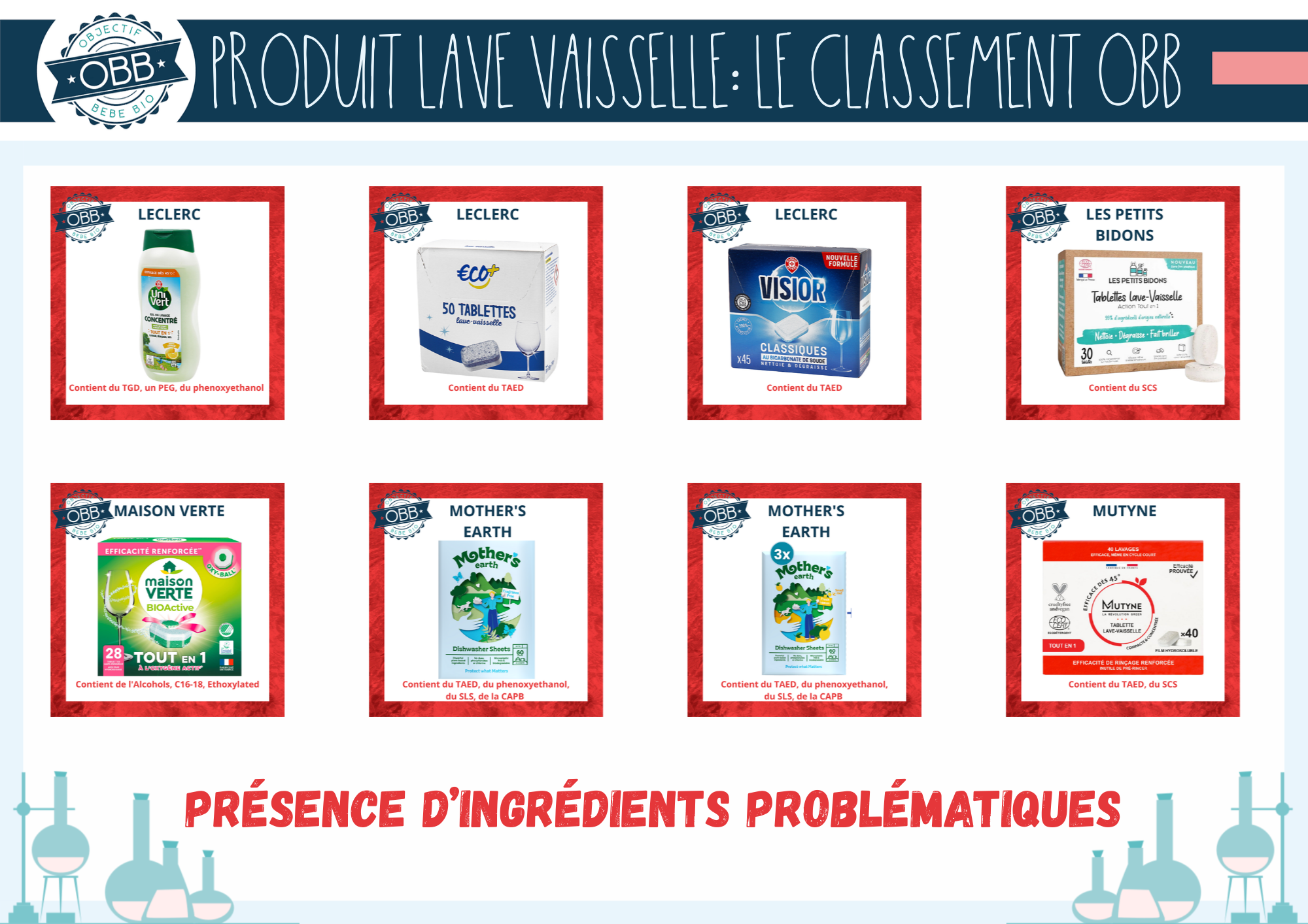 Les produits lave-vaisselle clean selon notre cahier des charges: