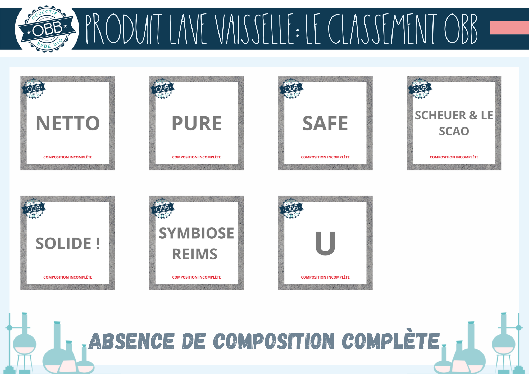 Celles dont la compo n’est pas complète sur le site de la marque = vignette grise