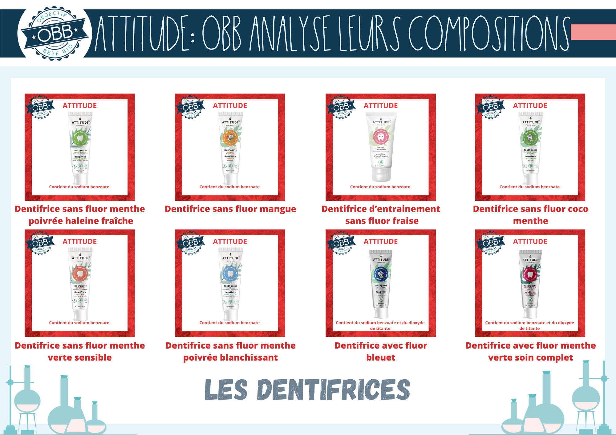 Mauvaise nouvelle également pour les dentifrices: toutes les références contiennent du sodium benzoate et ceux avec du fluor ont aussi du dioxyde de titane.