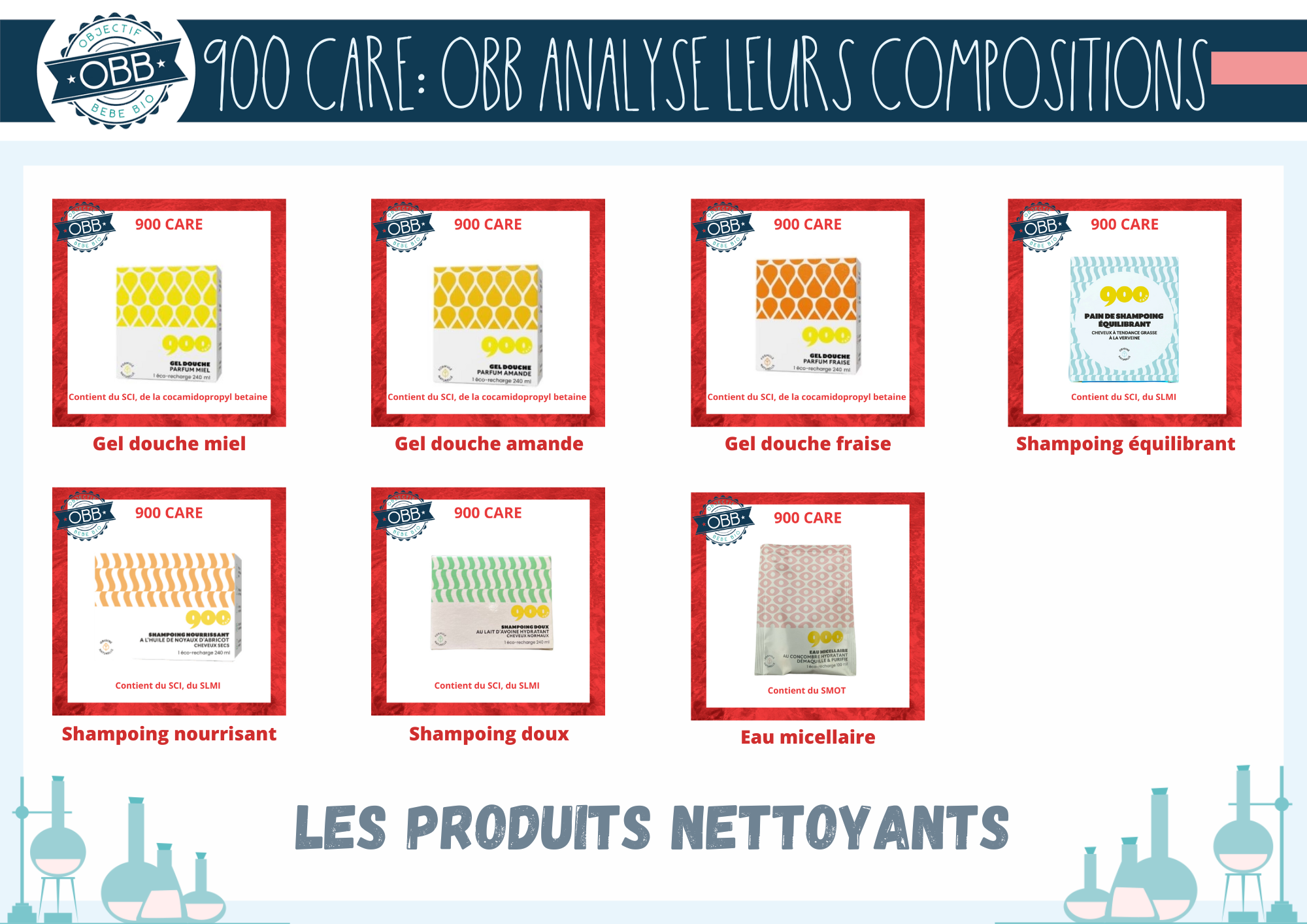 Créée il y a quelques années, en 2020, 900 care est une marque de cosmétiques qui propose des formats rechargeables. Le nom de la marque provient du temps moyen passé dans la salle de bain 15 minutes soit 900 secondes. Depuis la marque a étendu sa gamme en proposant également des produits ménagers. Nous allons voit si les formulations des produits sont sans ingrédients problématiques selon notre cahier des charges.