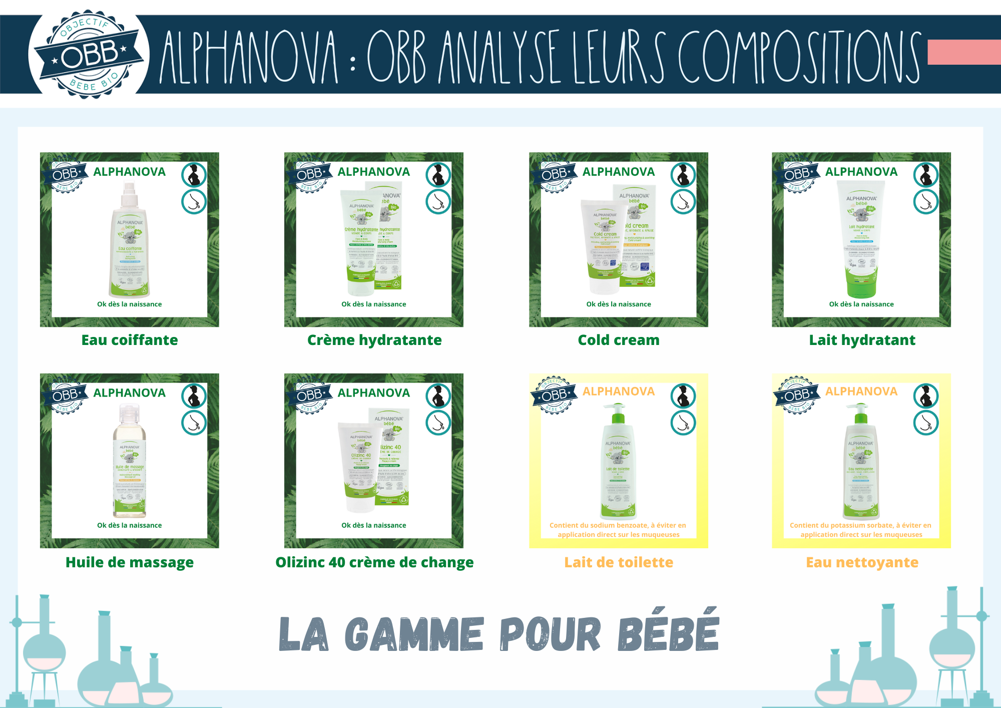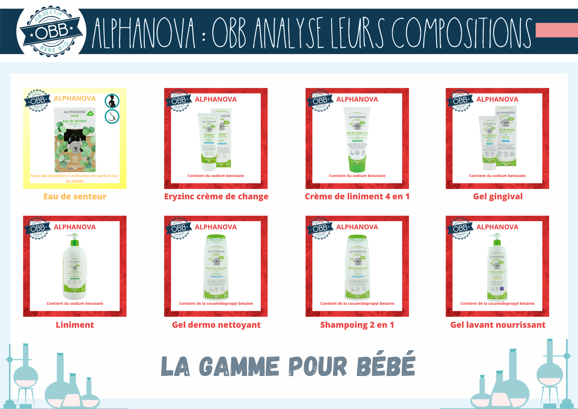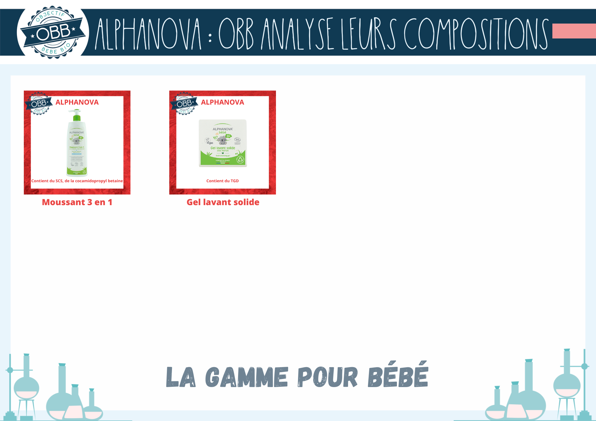 En ce qui concerne la gamme pour bébé, mis à part la crème hydratante qui correspond à nos critères, les autres produits contiennent des irritants. En effet, dans les produits lavants on retrouve des tensioctifs comme le sodium coco sulfate et la cocamidopropyl betaine.