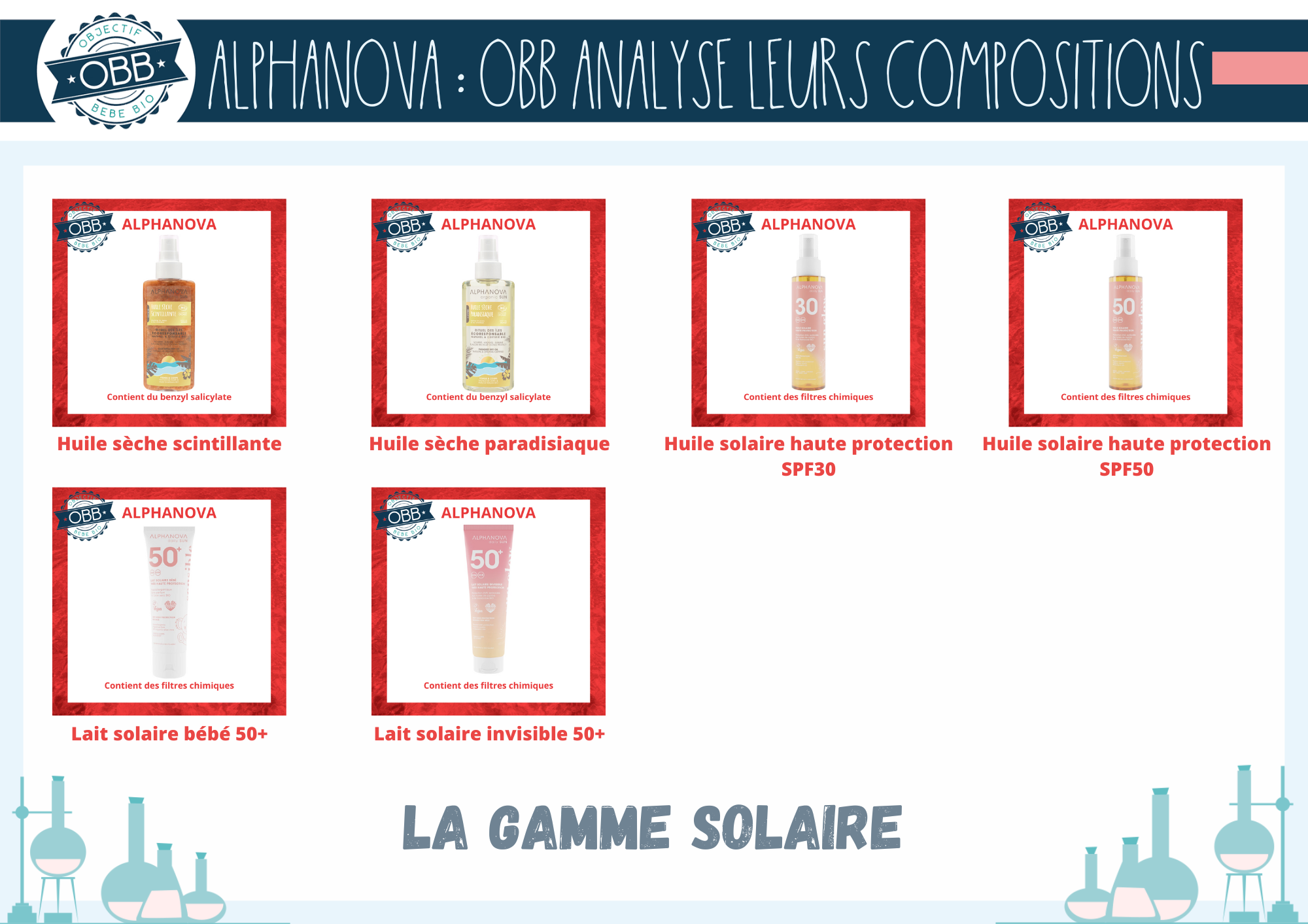 Au fils des années, la marque a étendu sa gamme de produits solaires. En plus des protections on trouve des gels apaisant, des shampoings, des gommages, mais aussi des huiles comme le monoï. Alphanova a récemment sorti des crèmes solaires avec des filtre organiques ou aussi appelés chimiques. Elle dispose également des crèmes solaires avec des filtres minéraux. Pour plus d’information nous vous invitions à lire notre article sur les crèmes solaires: