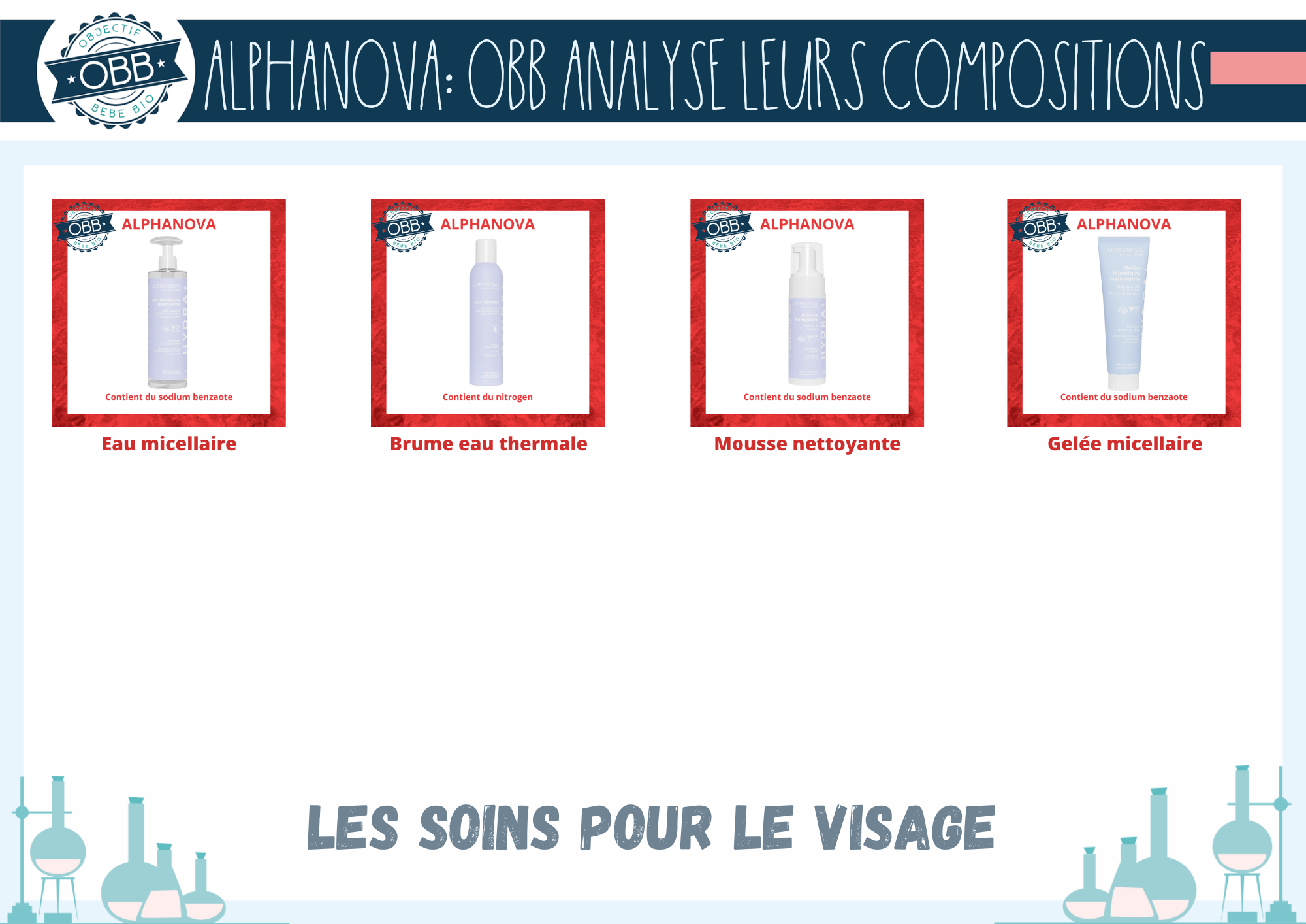 Récemment, Alphanova a conçu des soins pour le visage qui ne sont pas sous forme solide contrairement à la gamme déjà existante. Les produits nettoyants contiennent du sodium benzoate, qui est un conservateur synthétique irritant pour les muqueuses. Nous vous conseillons aussi d’éviter cet ingrédient dans les contours pour les yeux, ou alors que l’appliquer avec prudence.