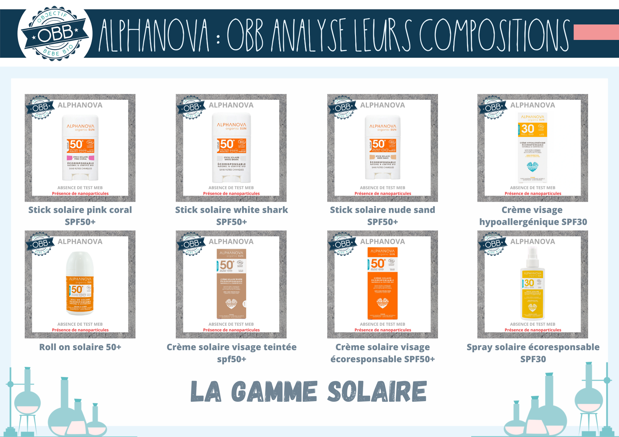 Au fils des années, la marque a étendu sa gamme de produits solaires. En plus des protections on trouve des gels apaisant, des shampoings, des gommages, mais aussi des huiles comme le monoï. Alphanova a récemment sorti des crèmes solaires avec des filtre organiques ou aussi appelés chimiques. Elle dispose également des crèmes solaires avec des filtres minéraux. Pour plus d’information nous vous invitions à lire notre article sur les crèmes solaires:
