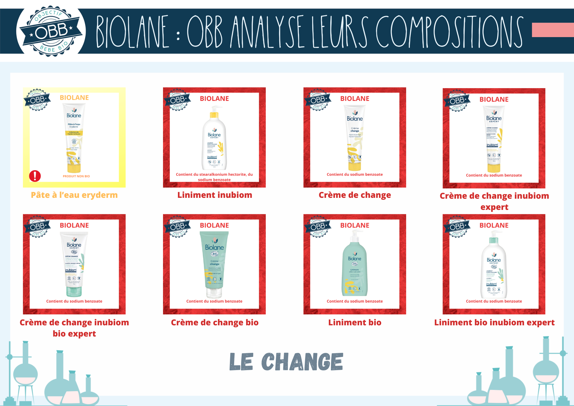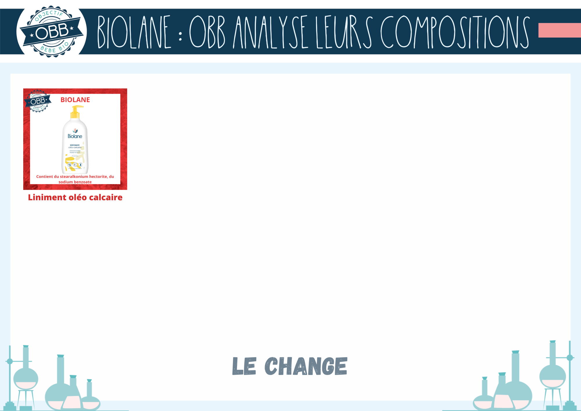 En ce qui concerne les produits pour le change, la marque a deux crèmes de change sans ingrédient problématiques mais non biologiques. Vous pouvez donc trouver des alternatives bio dans nos autres articles ou les albums du groupe Facebook. Vous pouvez aussi utiliser de l’argile blanche ou du lait maternel. Les autres références ont toutes dans leurs compositions du sodium benzoate qui est irritant pour les muqueuses.