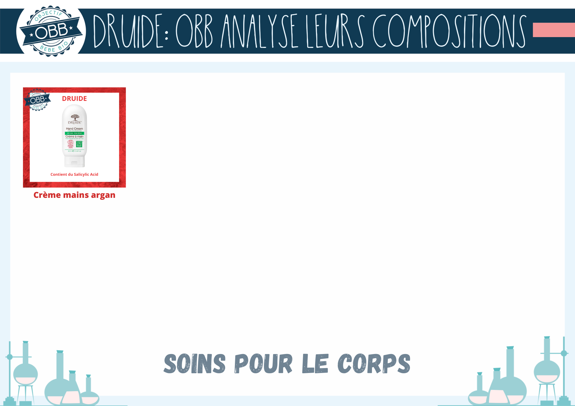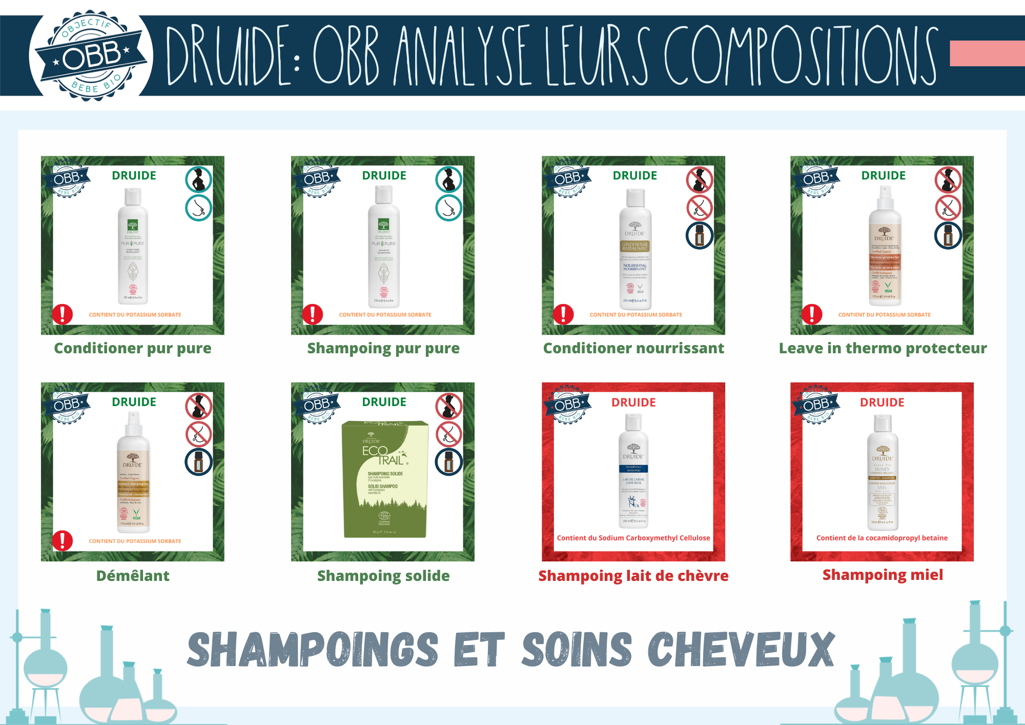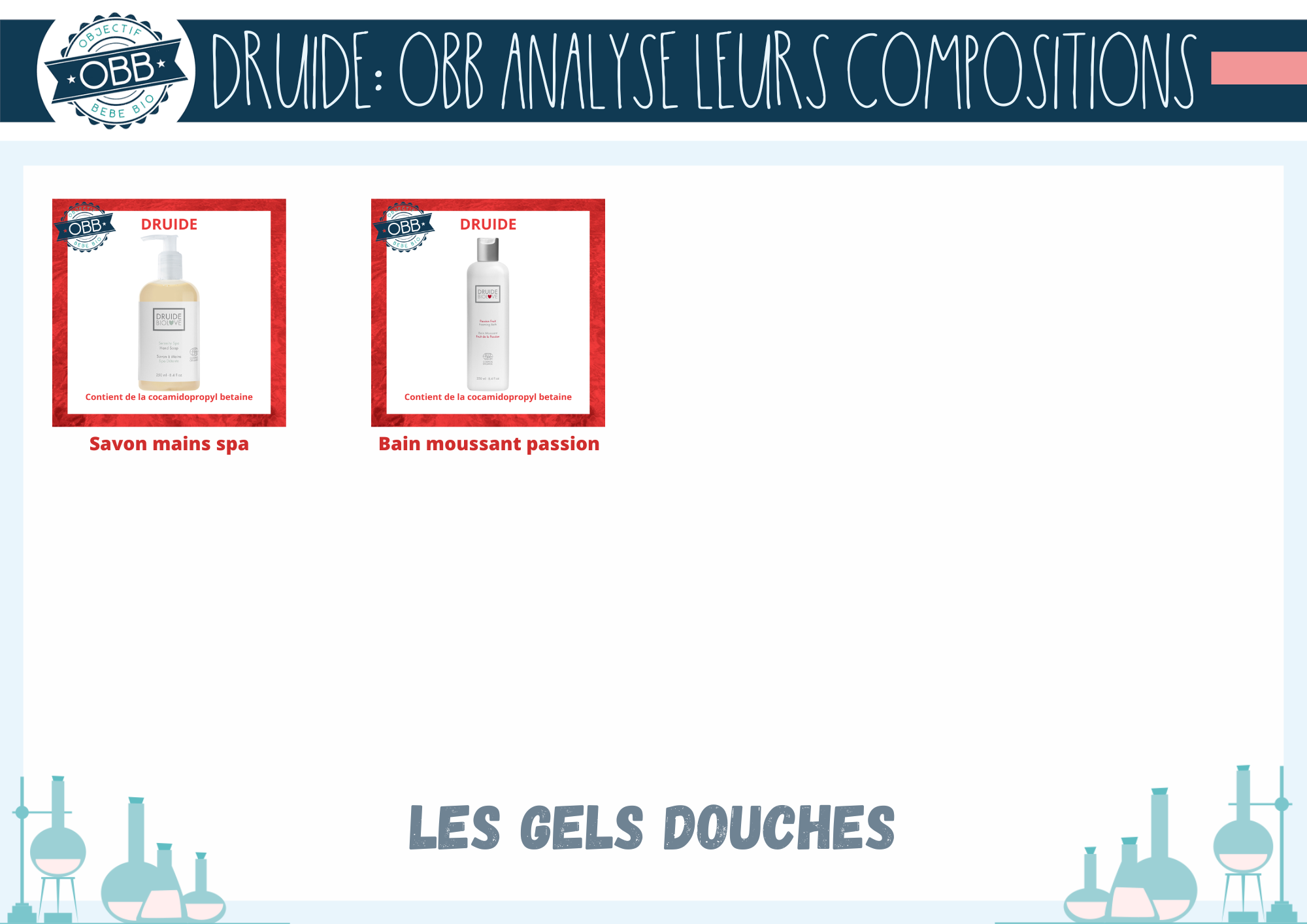 Druide propose une gamme de soin pour le visage et de dentifrices. Dans ces derniers on retrouve par exemple du dioxyde de titane, du potassium sorbate ou encore de la cocamidopropyl betaine. Vous trouverez des alternatives dans cet article: