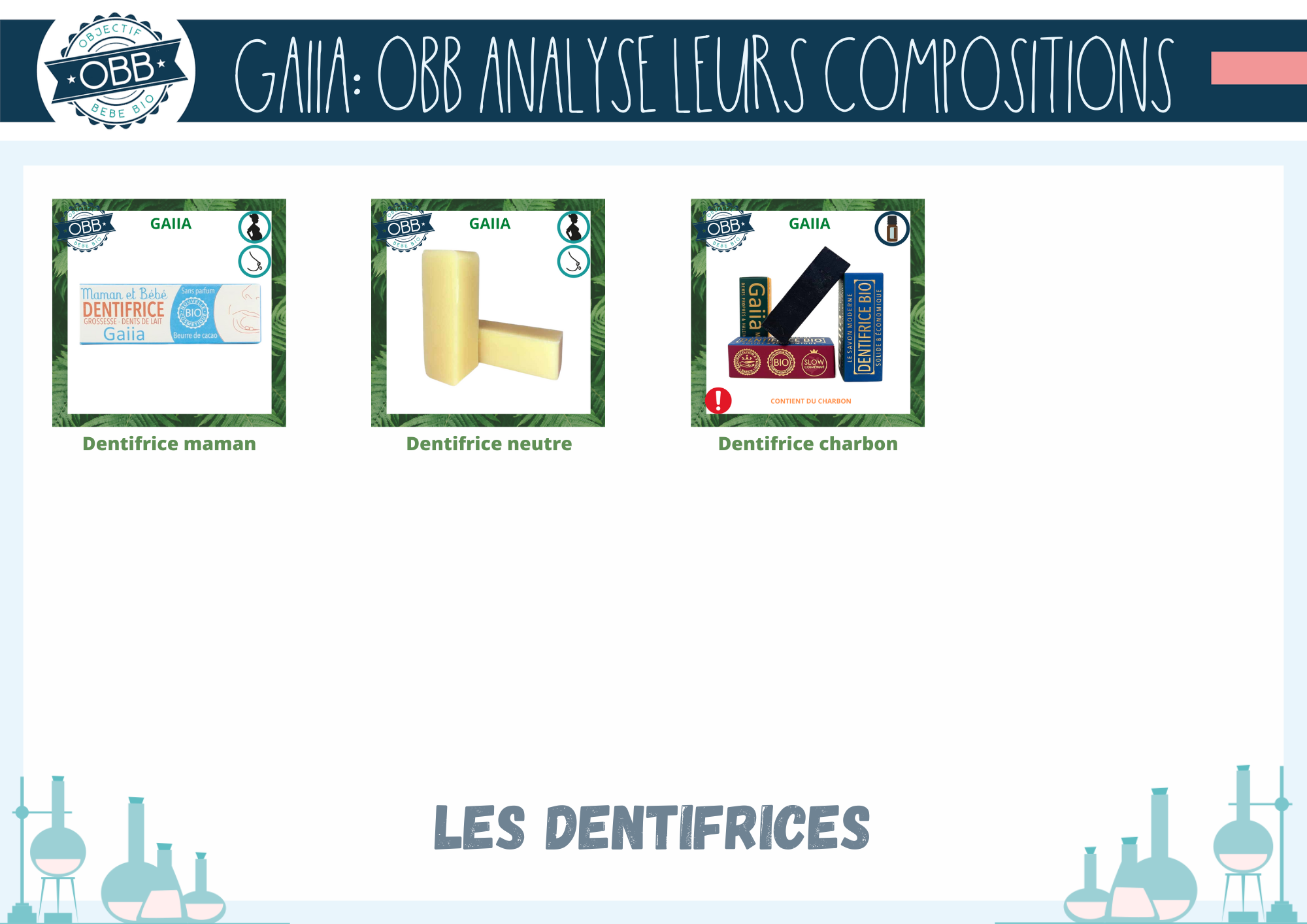 On termine par les 3 dentifrices solides conçus par Gaiia. Il s’agit de savons à base d’huile de tournesol et beurre de cacao. Attention si vous souhaitez utiliser la version avec du charbon, car cet ingrédient peut être trop abrasif selon votre santé bucco dentaire.