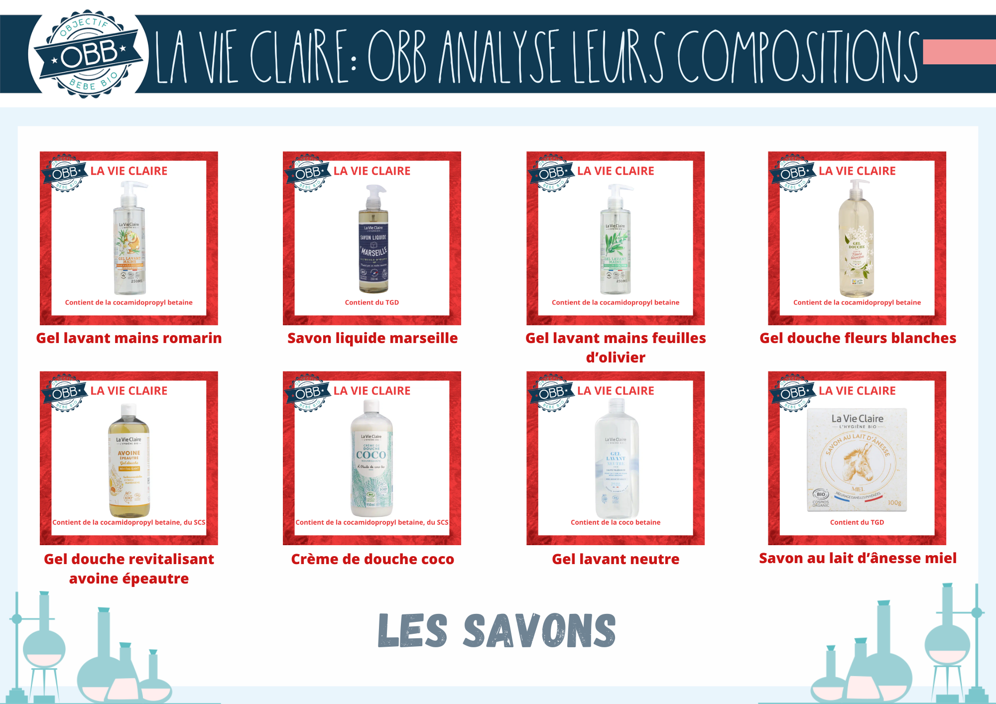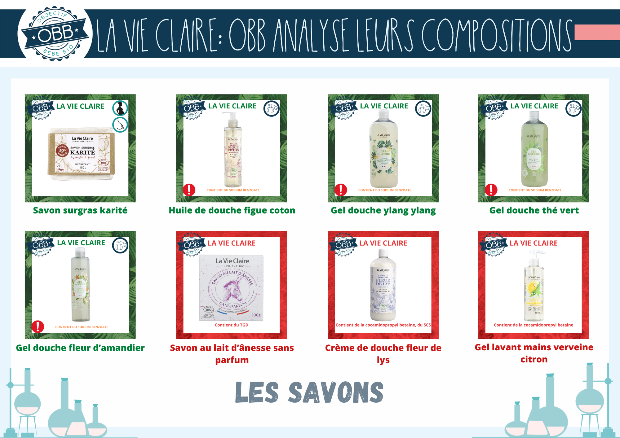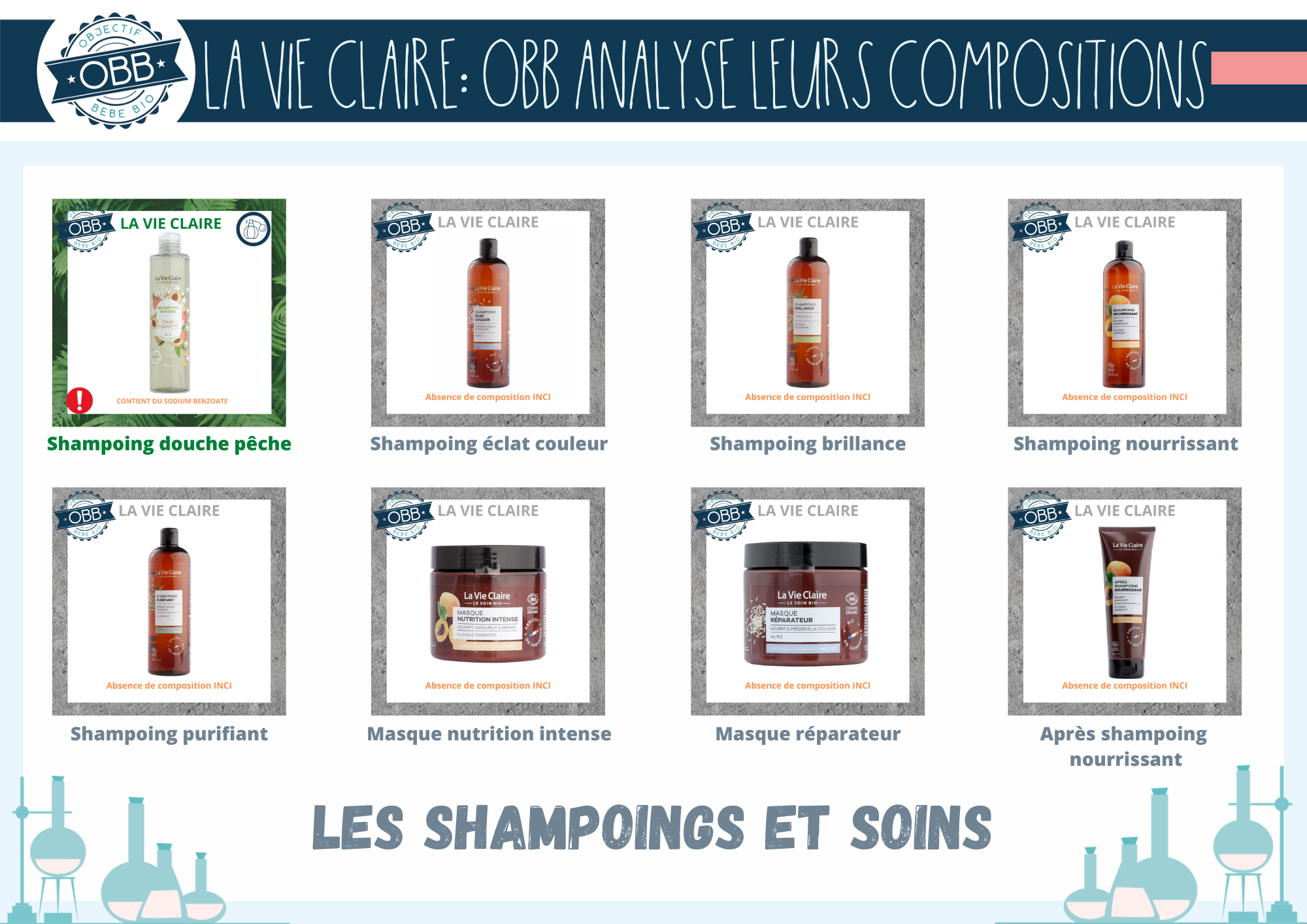 La Vie Claire propose plusieurs types de soins capillaires. Pour environ la moitié des références il manque la compo INCI sur le site de la marque donc nous ne pouvons pas vous dire s’ils contiennent des ingrédients problématiques. En dehors du shampoing douche à la pêche, les autres références ont des tensioactifs irritants comme le sodium coco sulfate.