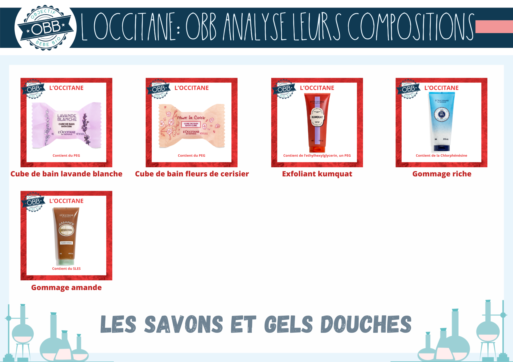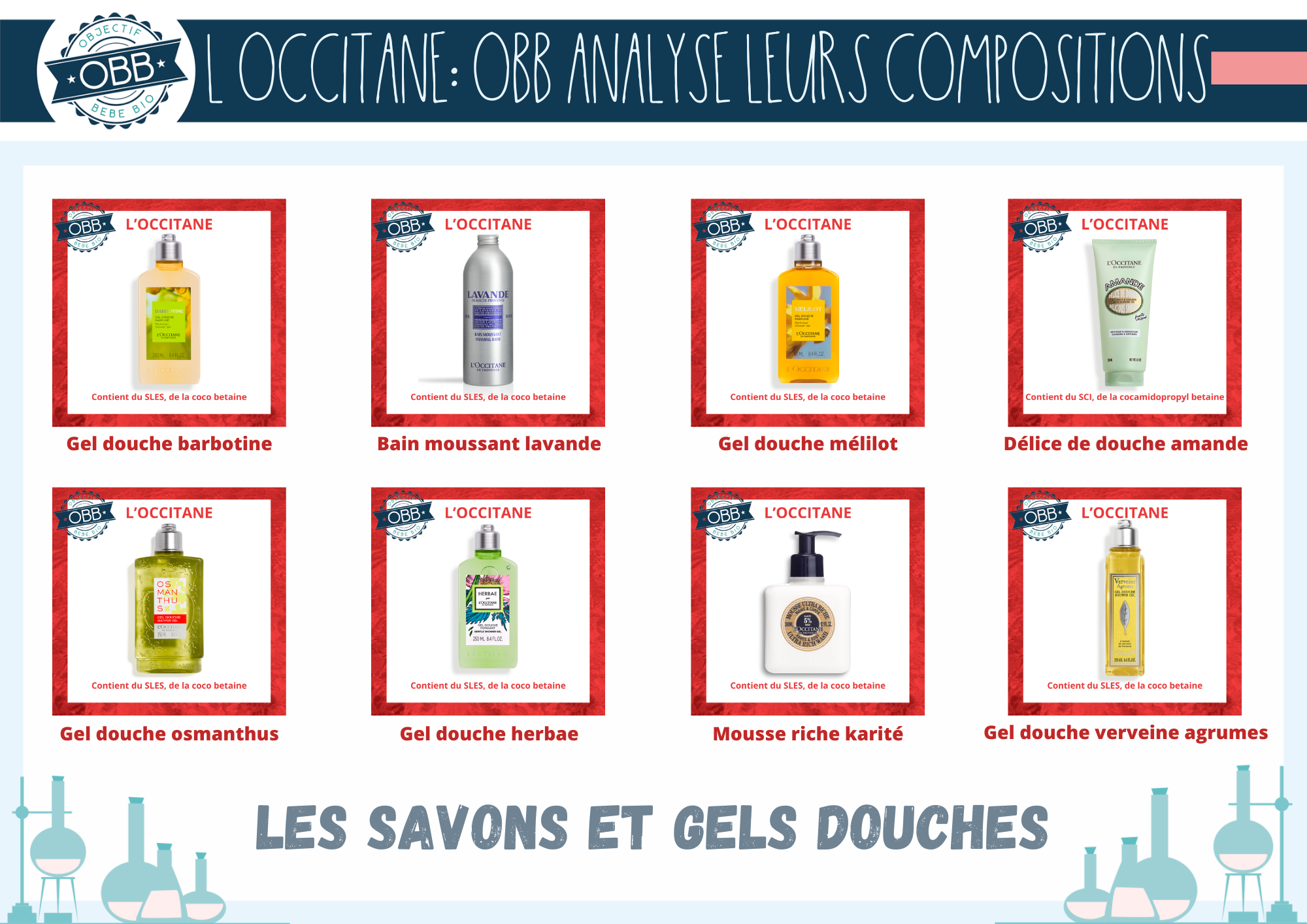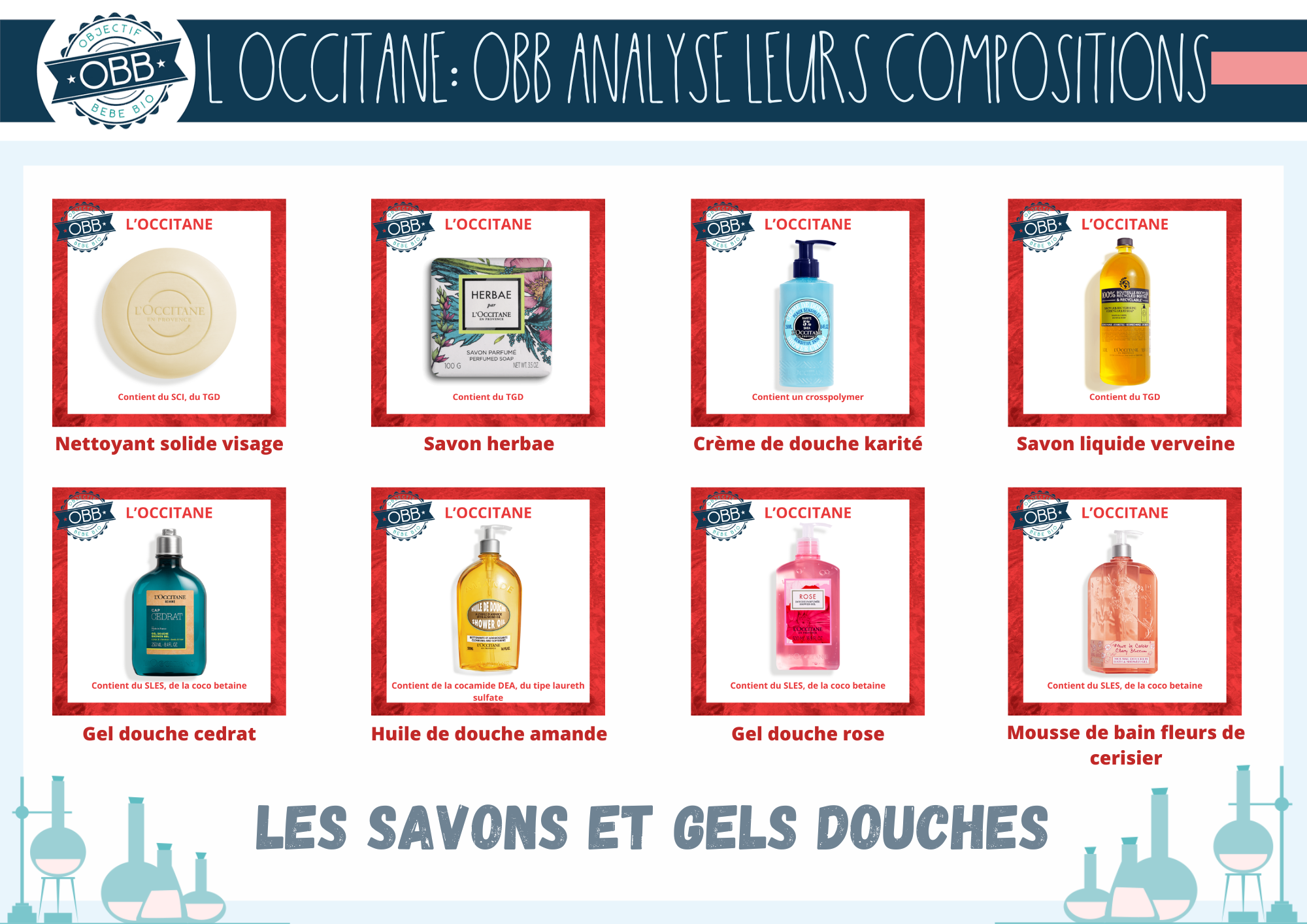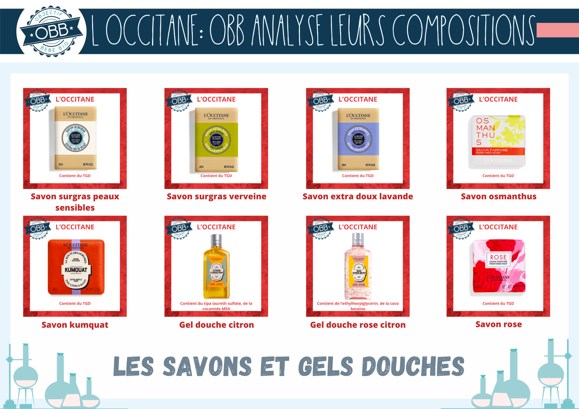 L’analyse de la composition des savons et gels douches de l’Occitane