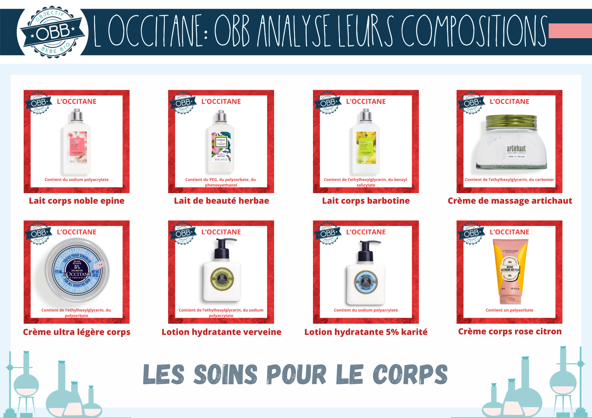L’analyse de la composition des savons et gels douches de l’Occitane