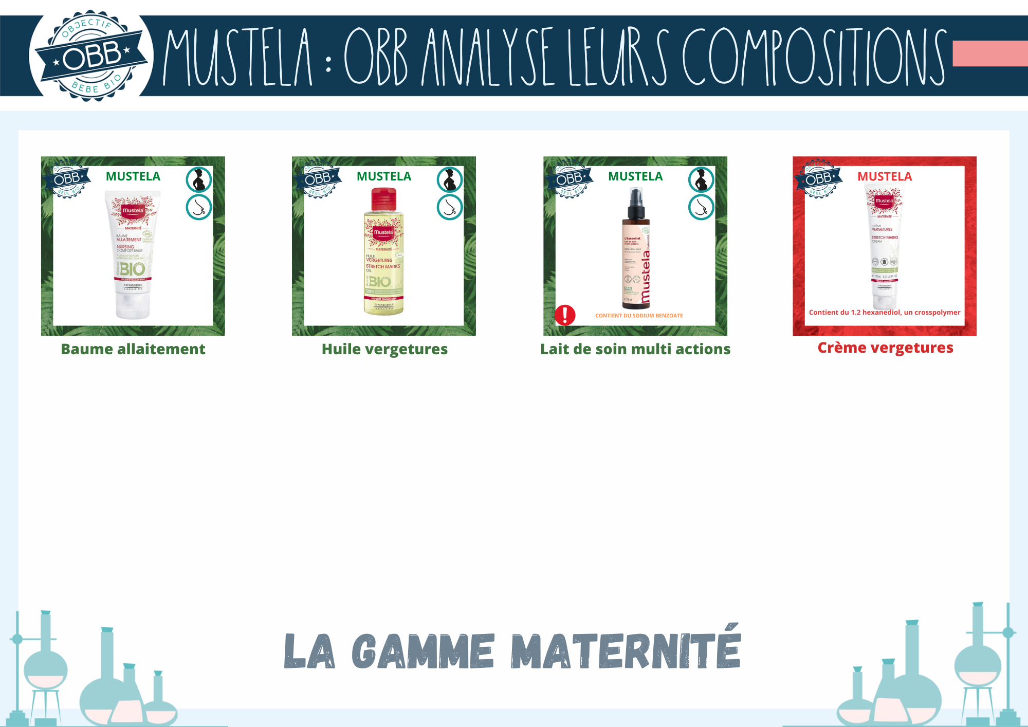 L’analyse de la composition de la gamme maternité de Mustela