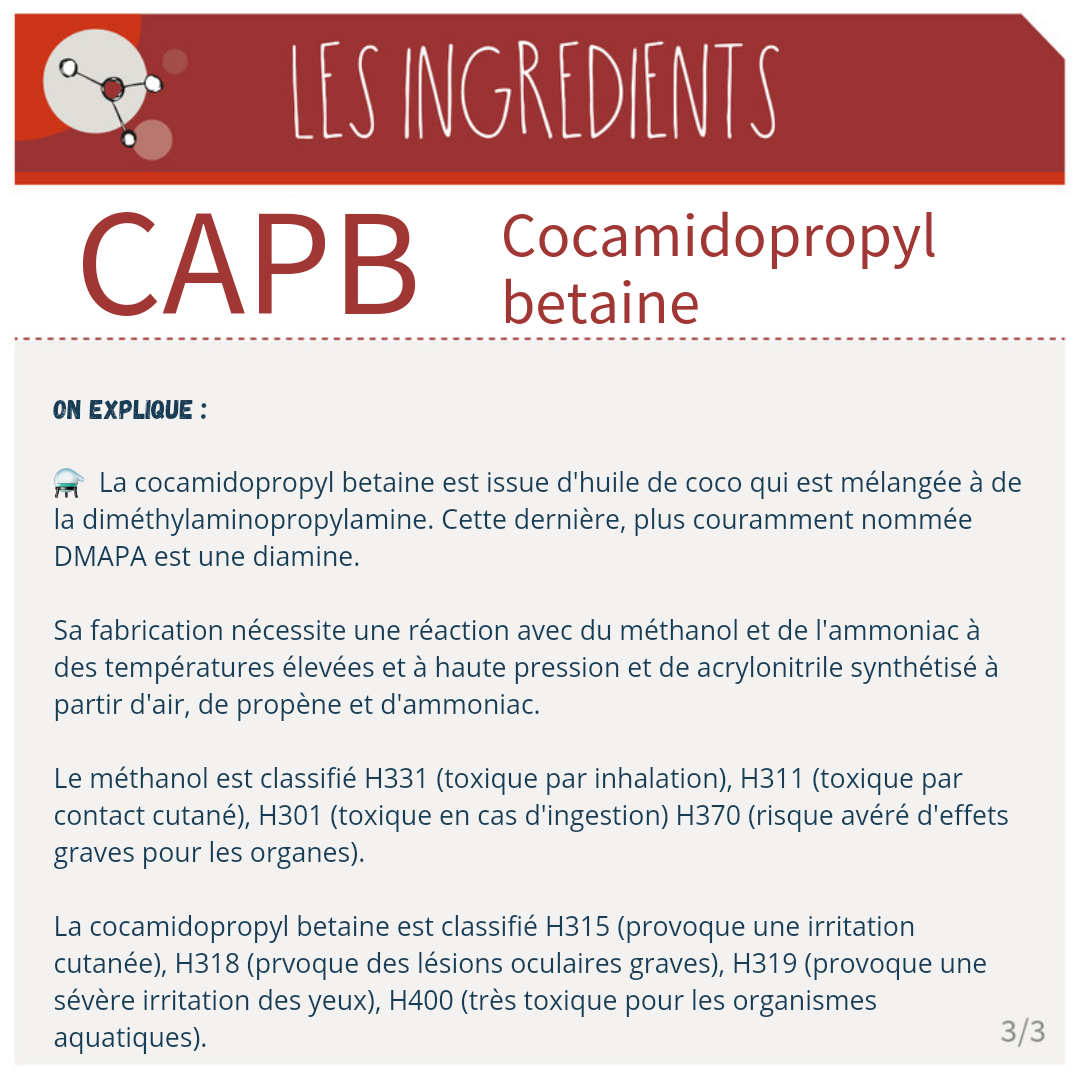 La marque propose un savon solide, mais aussi une large gamme de gels ou crèmes de douches. Cependant ils contiennent tous des ingrédients irritants comme le TGD et la cocamidopropyl betaine. Voici des explications plus détaillées sur cette dernières: