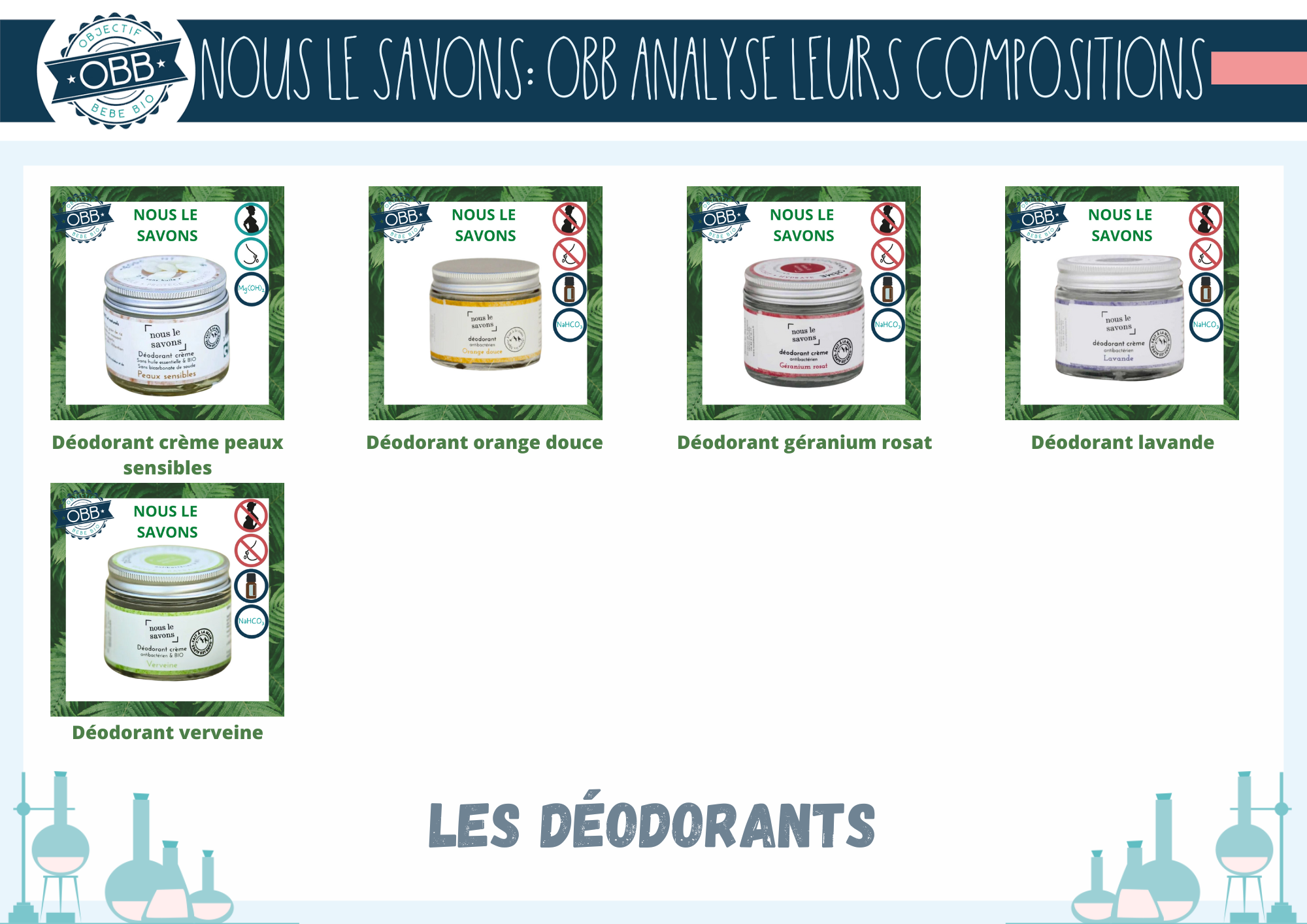 Parmi les produits de soins la marque propose des déodorants. La version compatible avec l’allaitement et la grossesse est sans bicarbonate de soude mais elle contient de l’hydroxyde de magnésium. Comme pour le bicarbonate, cet ingrédient est parfois mal toléré, même s’il n’est pas problématique. Comme vous le savez surement il faut toujours faire un test cutané avant d’utiliser un nouveau produit.