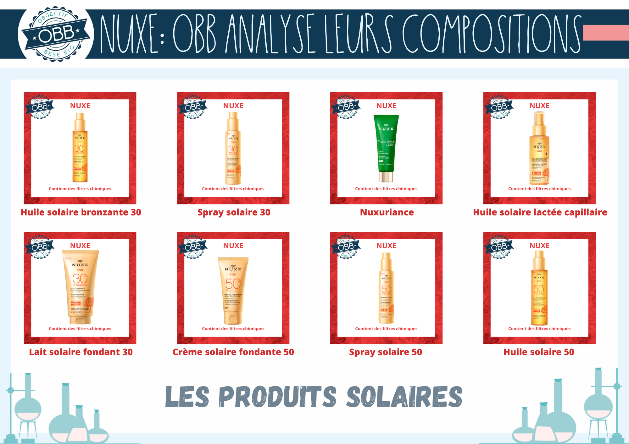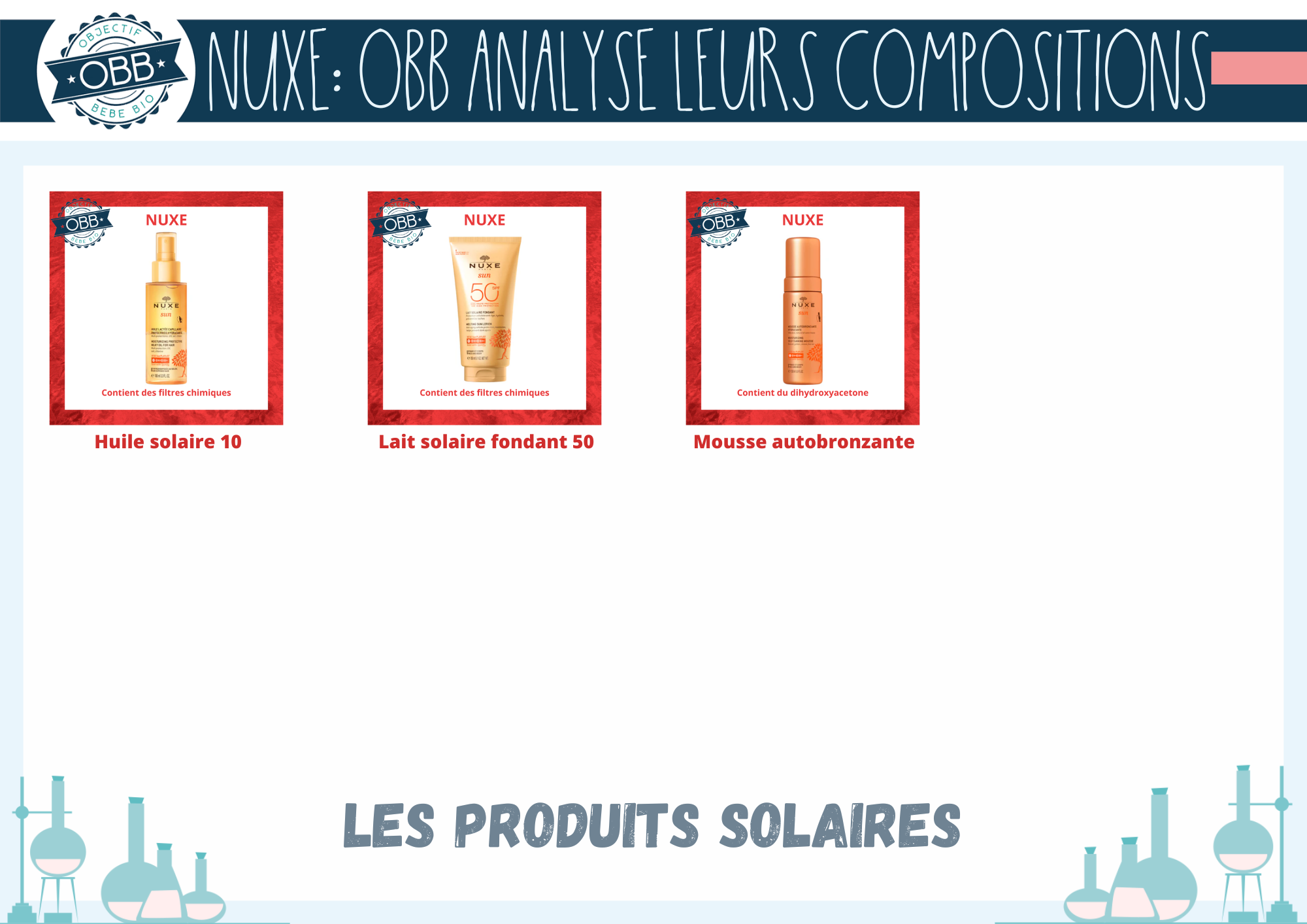 On termine par les produits solaires, tous fabriqués avec des filtres chimiques.