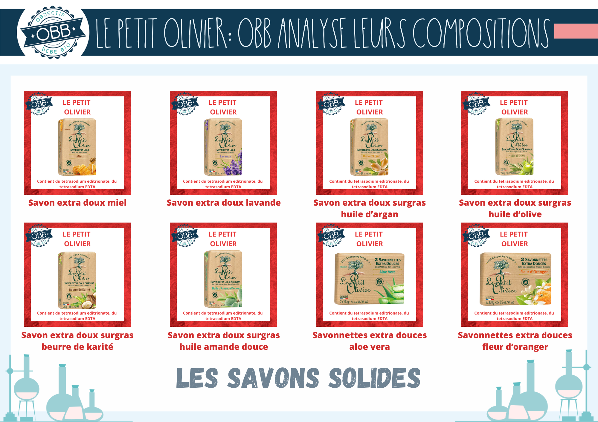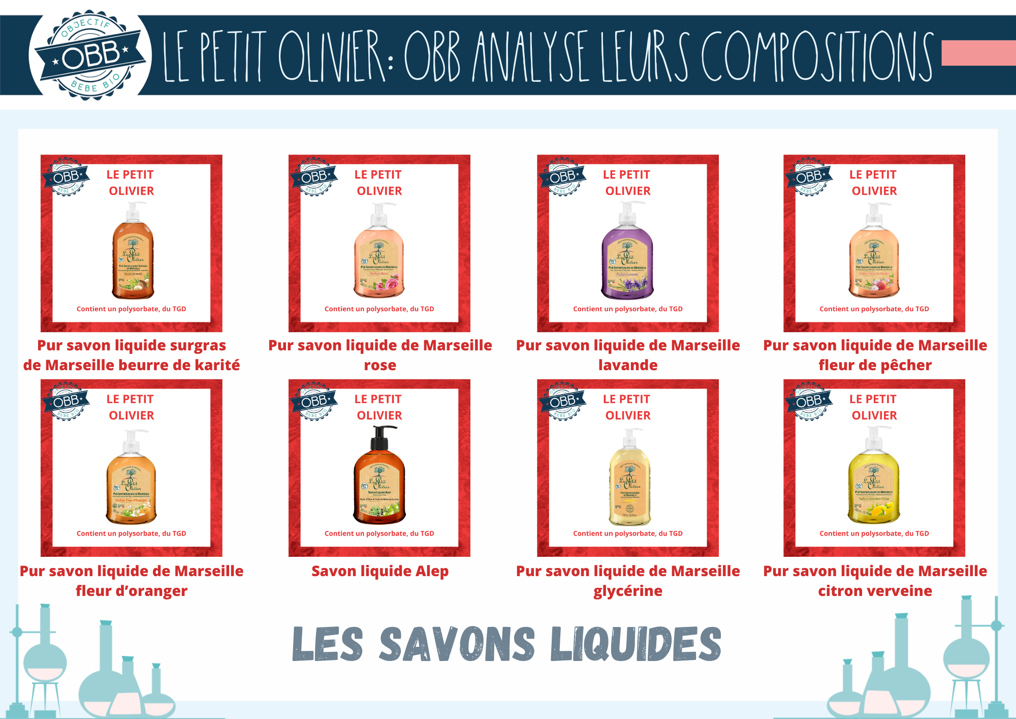 L’analyse de la composition des savons solides et liquides Petit Olivier