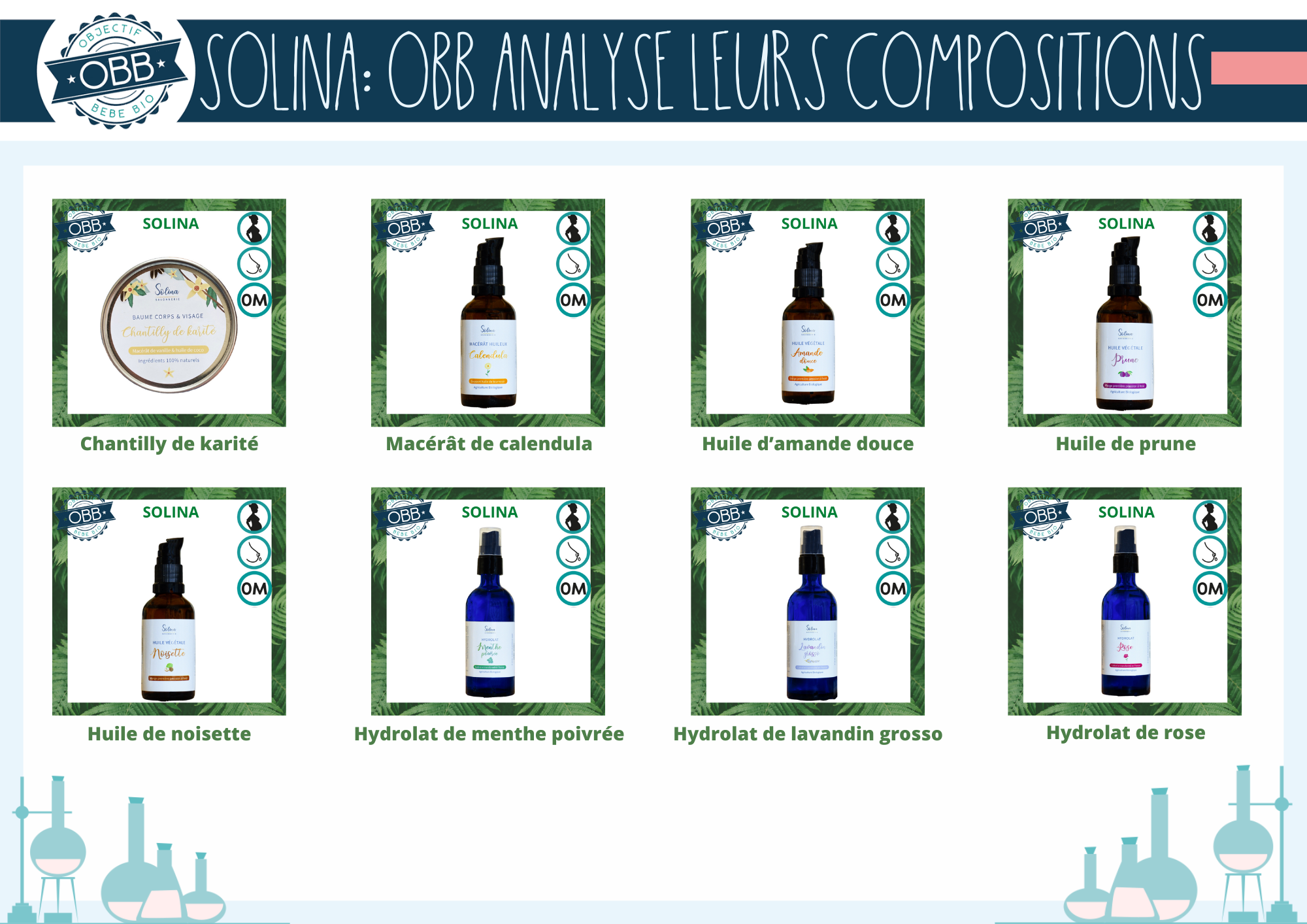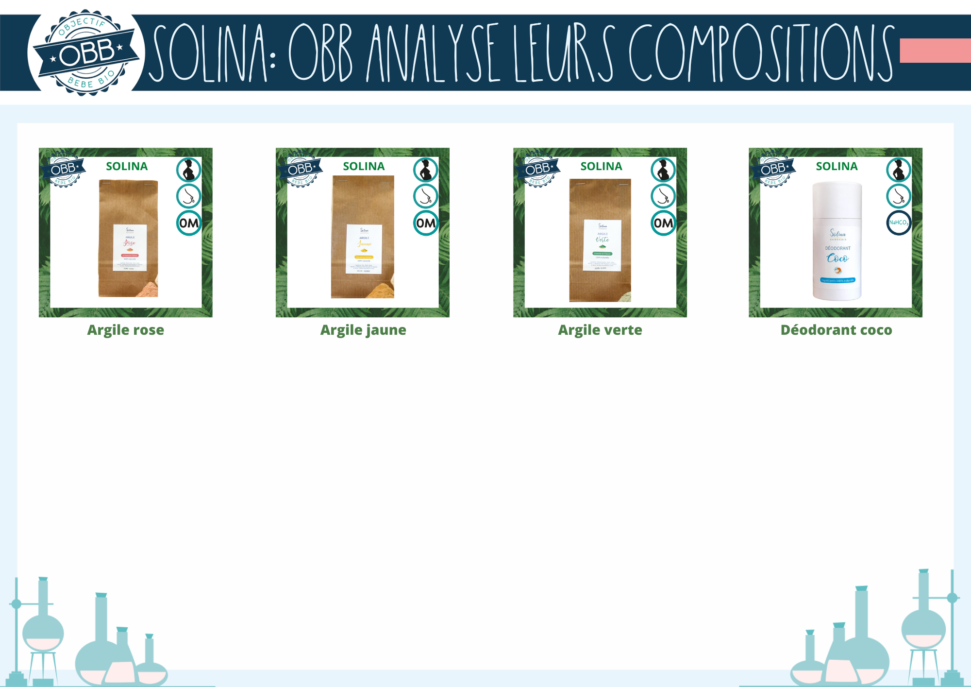 La marque propose également des soins simples avec des compositions minimalistes. Il y a par exemple un macérât de calendula, qui peut s’utiliser sur les petites irritations, comme les rougeurs du siège de bébé. Les argiles brutes vendues par Solina sont extraites en carrière dans le sud-ouest de la France. Les hydrolats sont sans conservateur avec un ratio de 1:1. Si vous souhaitez en savoir plus nous vous invitons à lire cet article: