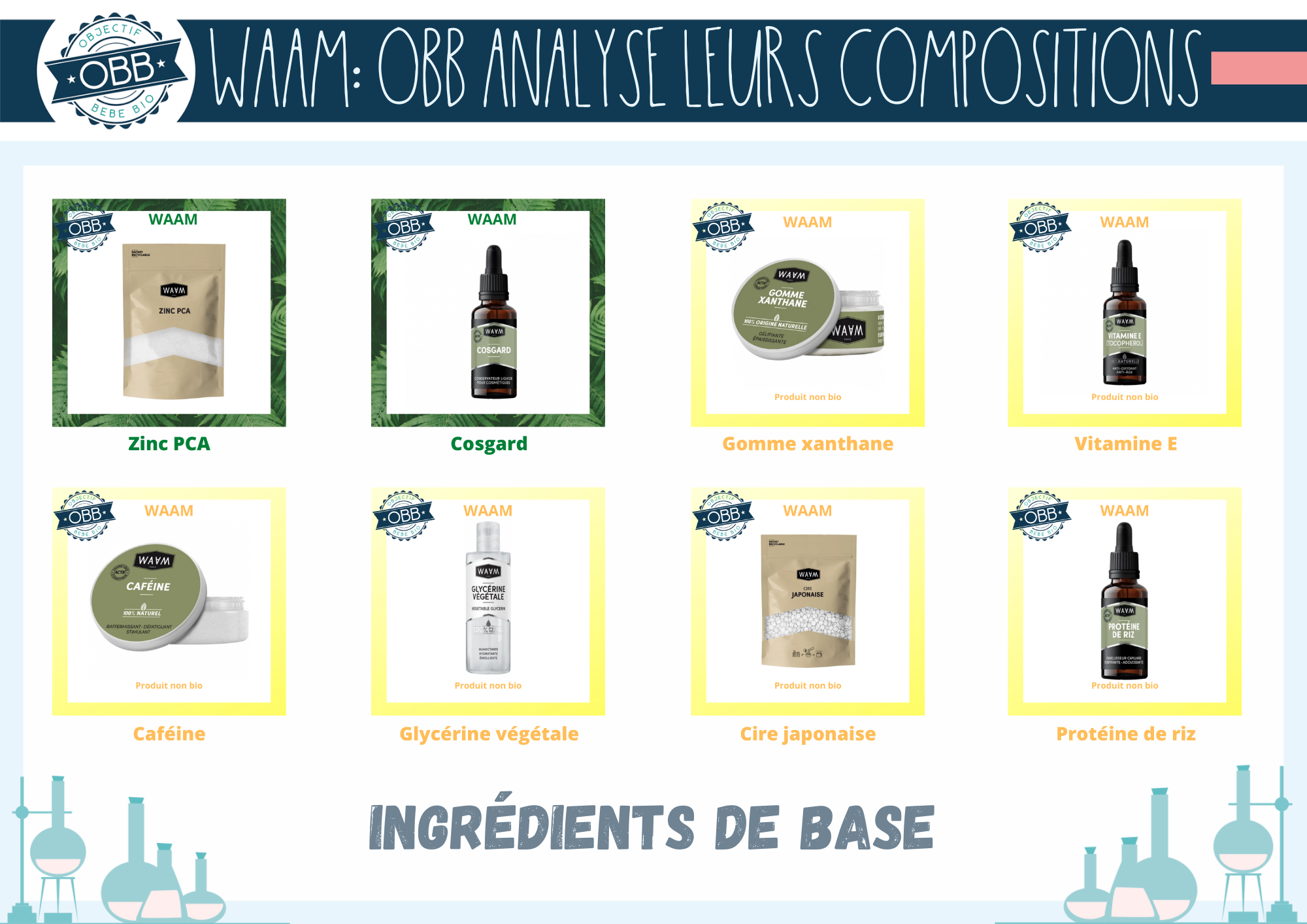 Voici la gamme de produit qui a fait le succès de la marque: les ingrédients pour les DIY. Comme pour beaucoup de gammes Waam une partie des références ne sont pas biologiques. Ils proposent également deux tensioactifs qui sont malheureusement irritants. Voici le lien de notre article qui détaille l’origine et le processus de fabrication du SLMI: