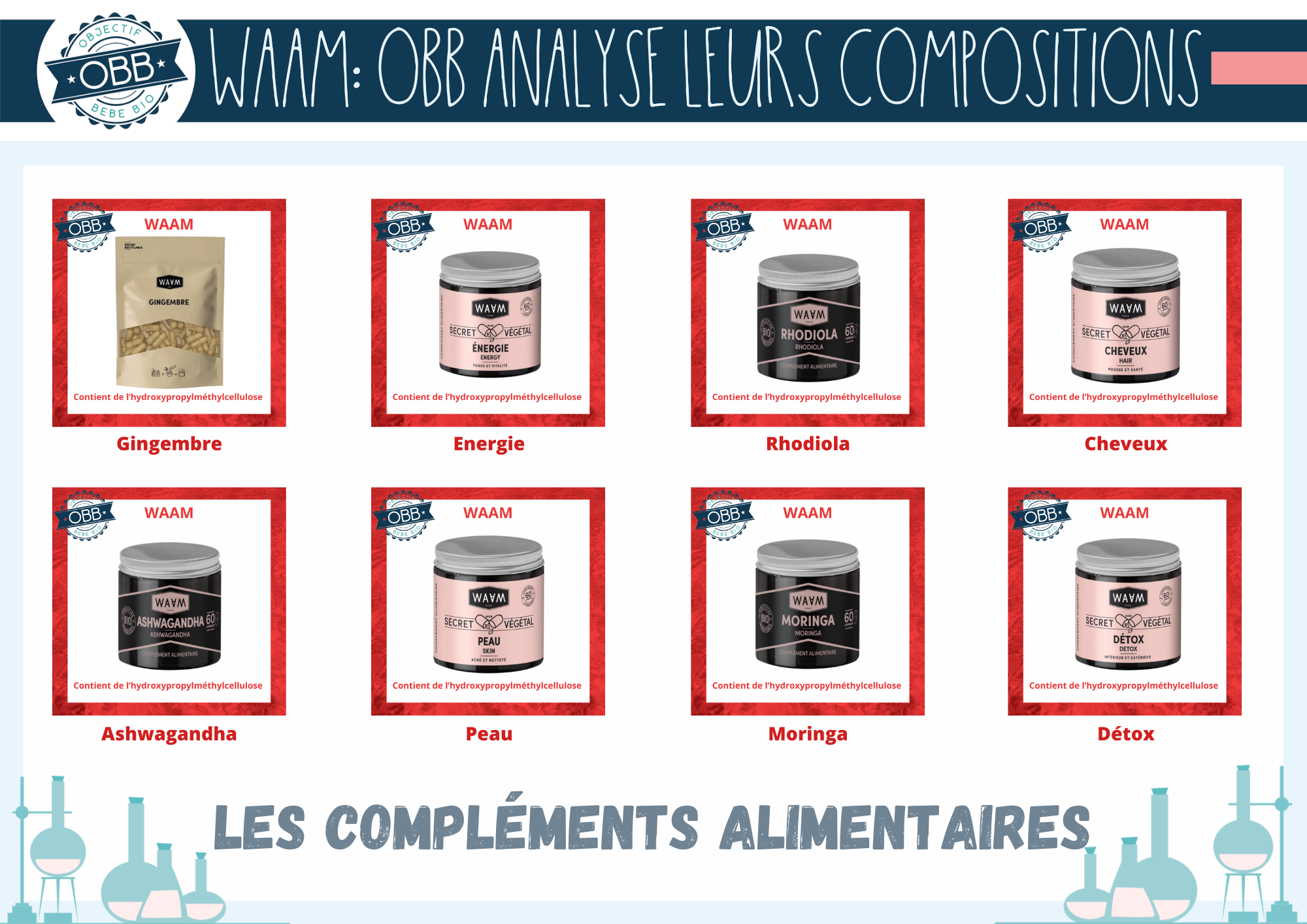 Pour conclure notre article, voici les compléments alimentaires proposés par Waam. Nous vous rappelons que la supplémentation, même via des produits disponibles sans ordonnance, doit se faire avec l’avis d’un médecin. En effet, la surdose présente aussi des risques pour la santé. Toutes les références de la marque ont une gélules en HPMC.