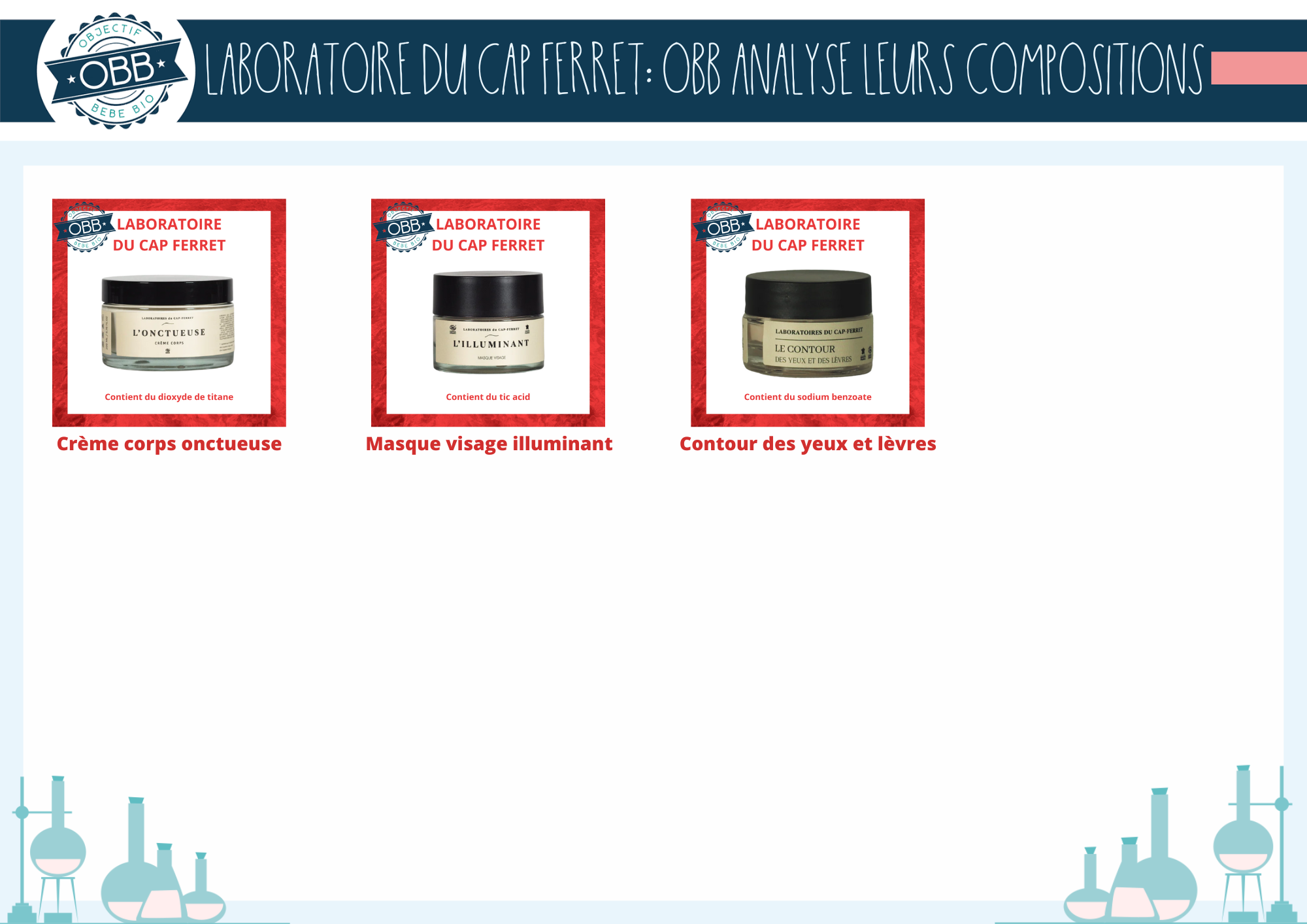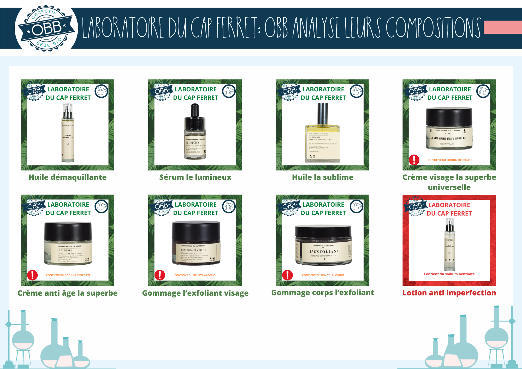 L’analyse de la composition des produits du Laboratoire du Cap Ferret