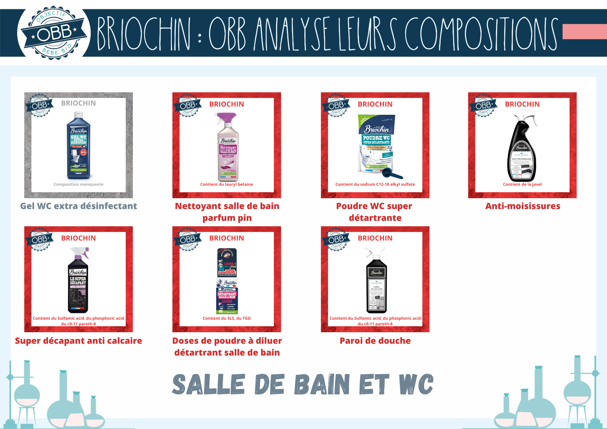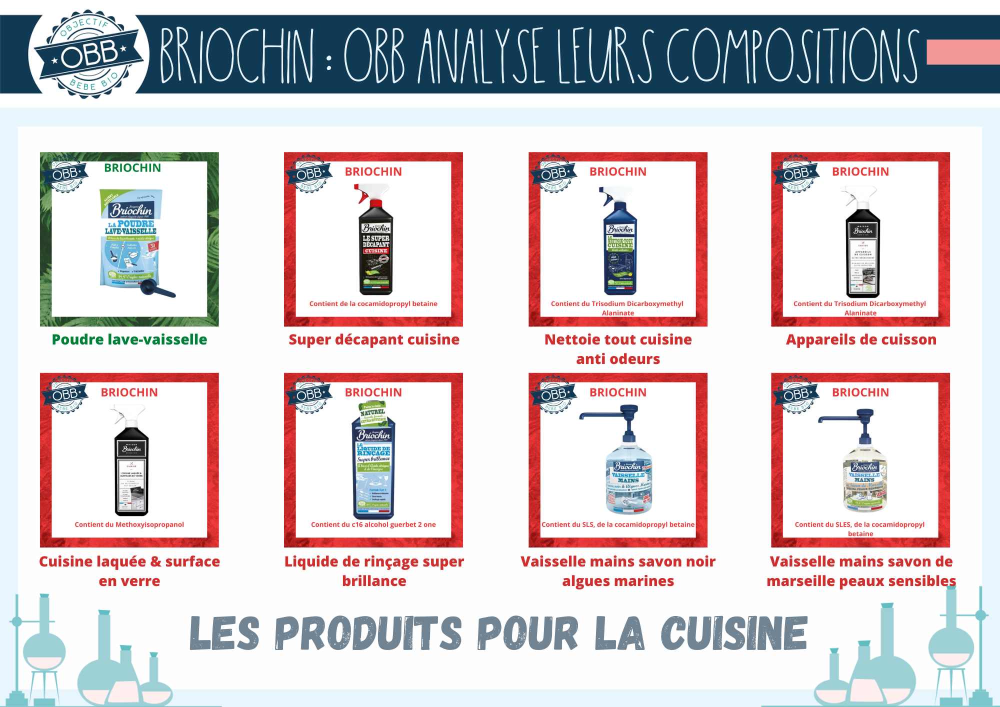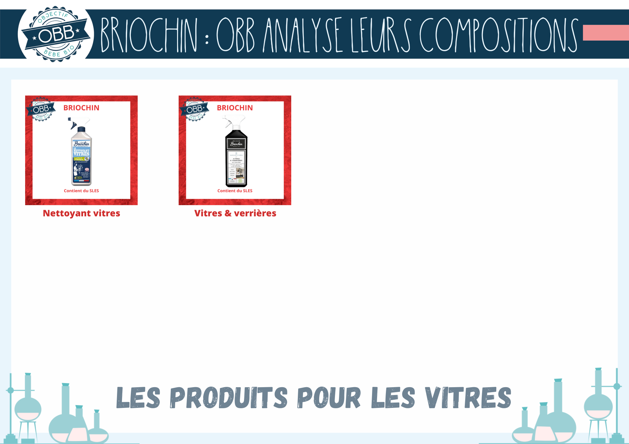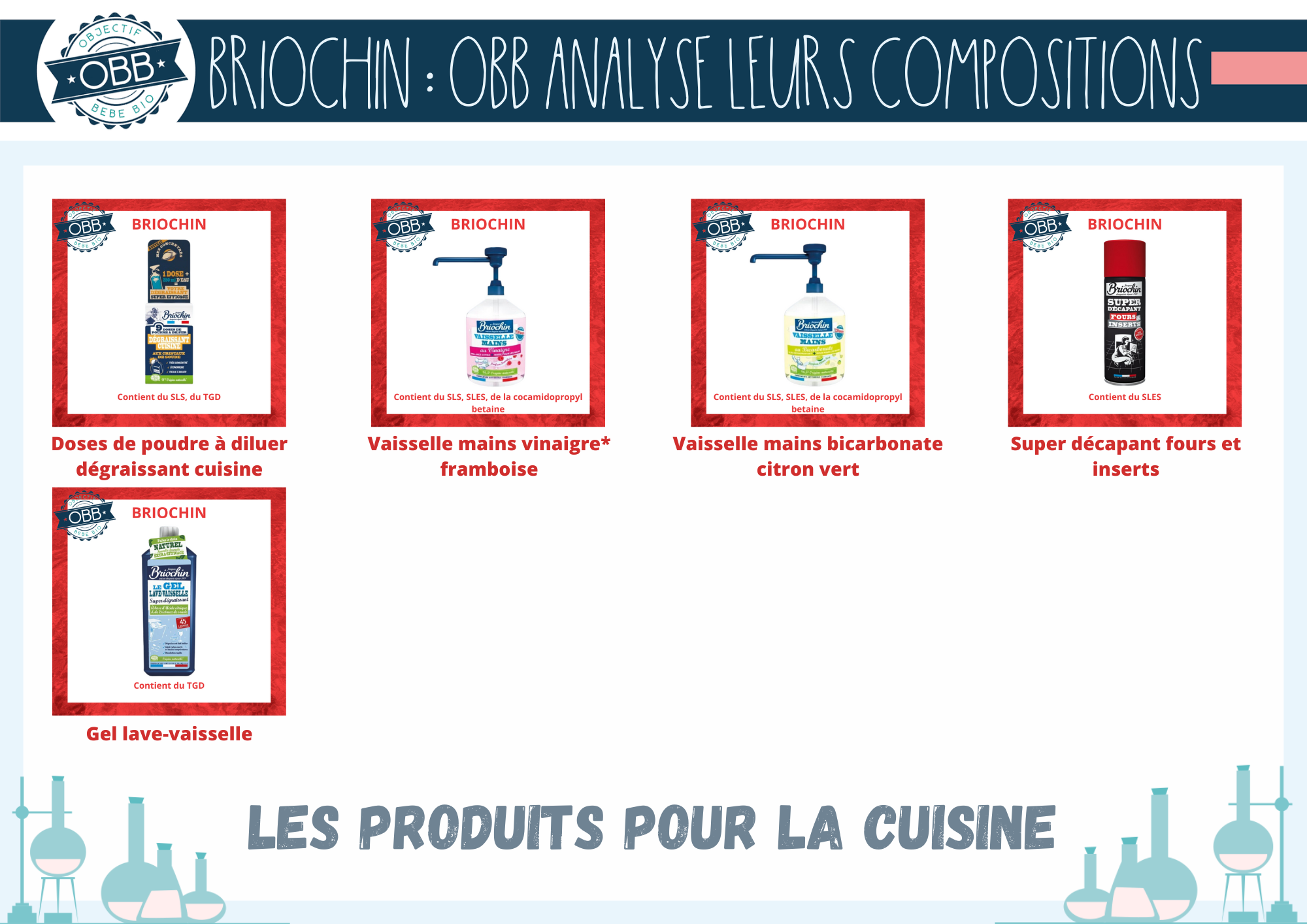 Tout comme les lessives, la plupart des nettoyants pour le sol Briochin contiennent du SLS, mais aussi du TDG pour le produit en dose à diluer.
